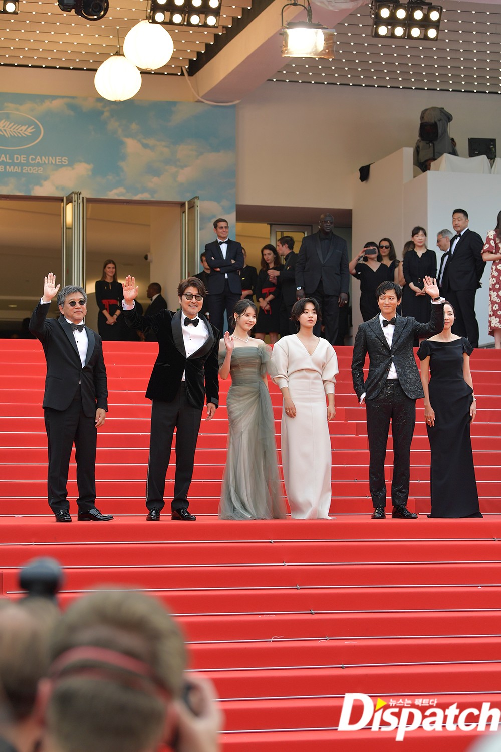 '브로커' 팀은 뤼미에르 계단에 올라, 칸의 분위기를 만끽했다. 송강호는 양팔을 번쩍 들어 인사했다. 강동원, 이지은, 이주영도 칸 관객들과 호흡했다.