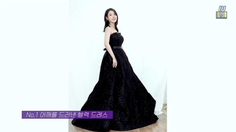드레스 피팅하는 모습을 영상으로 처음 찍어본다며 쑥스러워한 아이유. 그는 첫 번째 후보로 블랙 컬러의 튜브톱 드레스를 입고 등장했습니다.