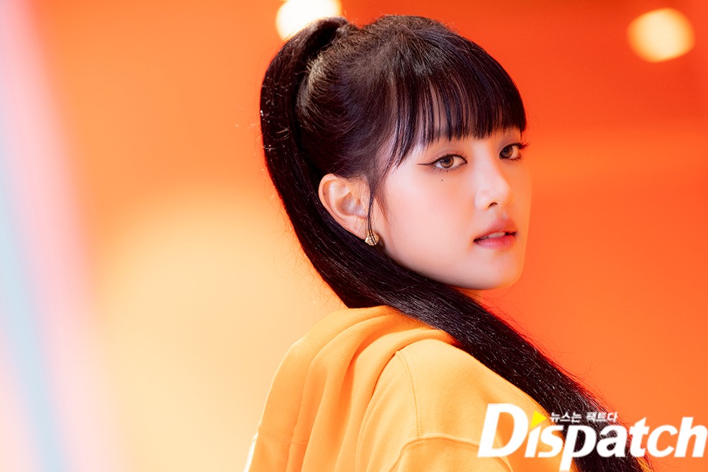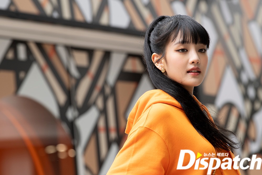 민니는 오렌지 컬러 후디로 눈길을 끌었다. 하이힐 또한 같은 컬러로 매치해 스타일리시한 감각을 뽐냈다.