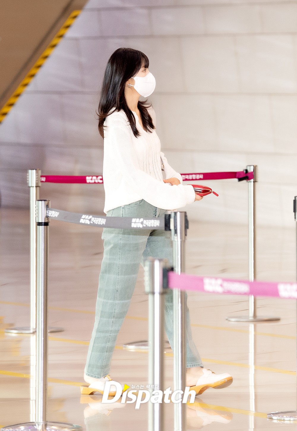 조이는 이날 청바지에 가디건을 매치해 청순한 공항패션을 연출했다. 우아한 분위기와 미모가 돋보였다.