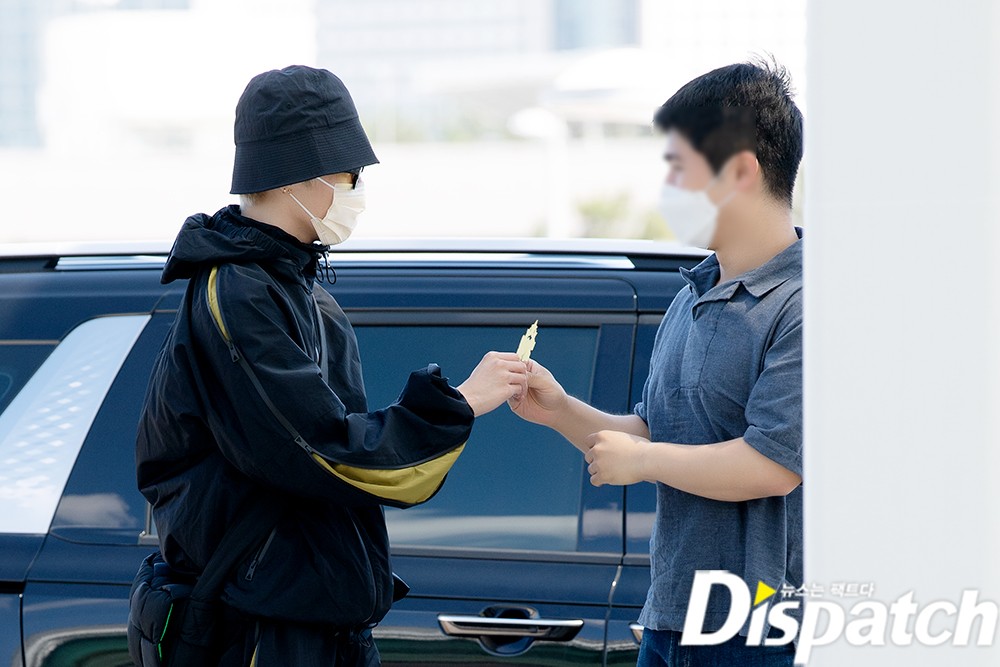 태용은 이날 올블랙 패션으로 시크한 매력을 뽐냈다. 생일 멘트도 인증했다. 어깨에 달고 입국장으로 들어섰다.