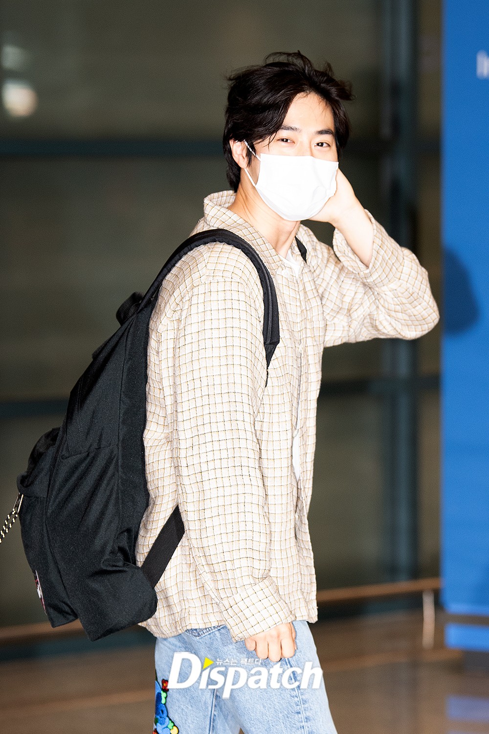 수호는 이날 청바지에 셔츠로 수수한 공항패션을 연출했다. 공항에 모인 팬들과 취재진을 향해 인사를 하는 등 완벽한 팬서비스도 선보였다.