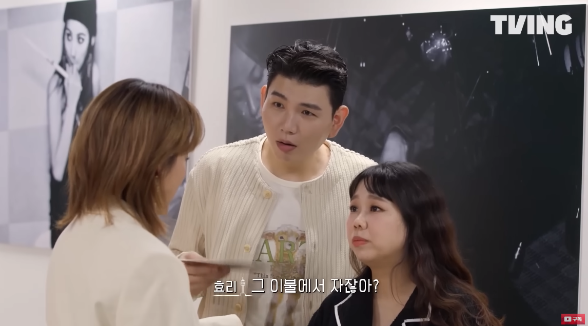 이효리는 "근데 그 이불 있잖아. 그 이불에서 자잖아? 티셔츠가 분홍색으로 변한다"라며 "거기서 자고 일어났는데 등이 핑크색이었다"라고 설명했죠.