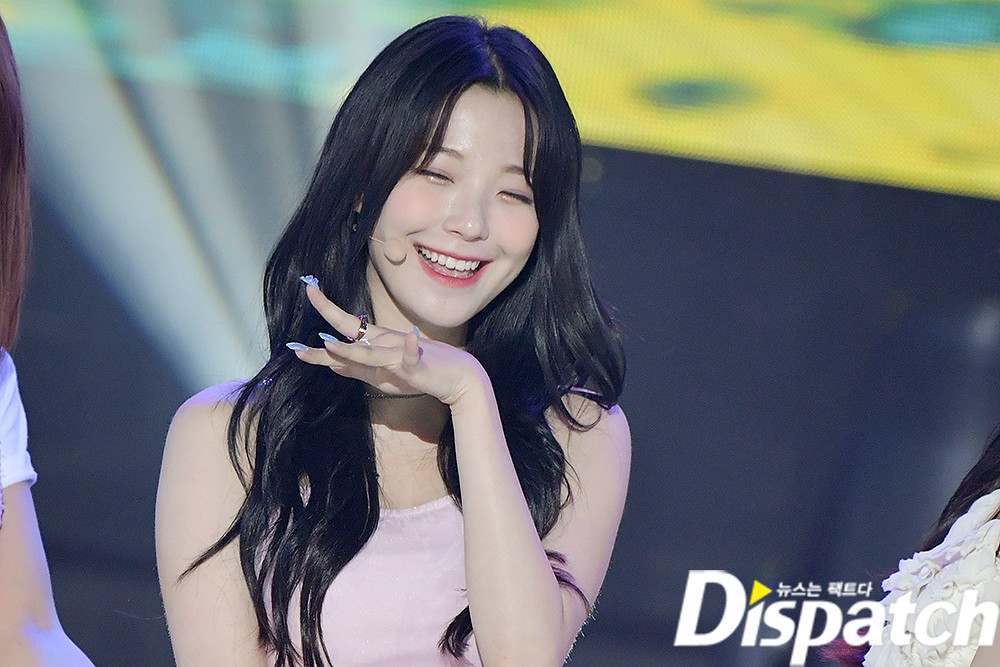 '프로미스나인' 백지헌은 이날 특유의 눈웃음으로 취재진의 이목을 사로잡았다.