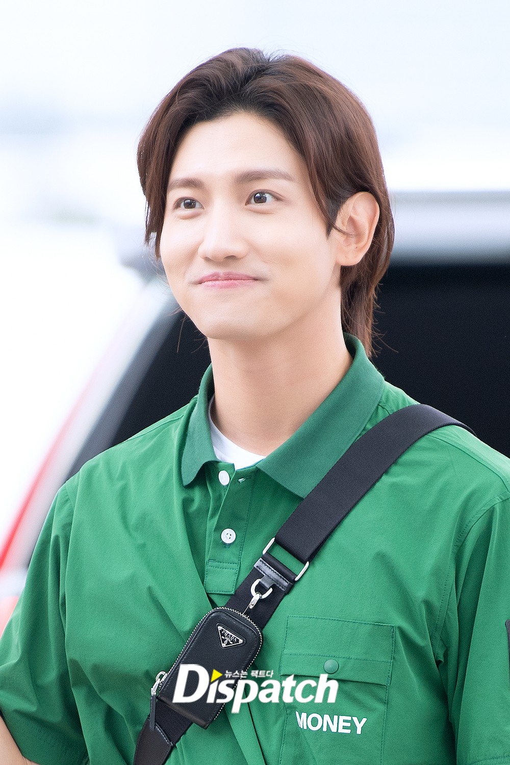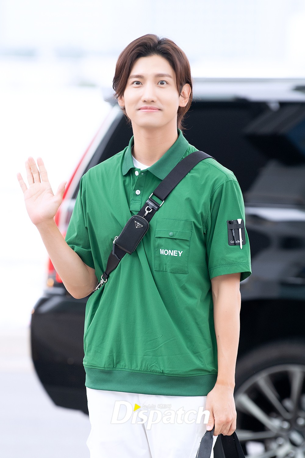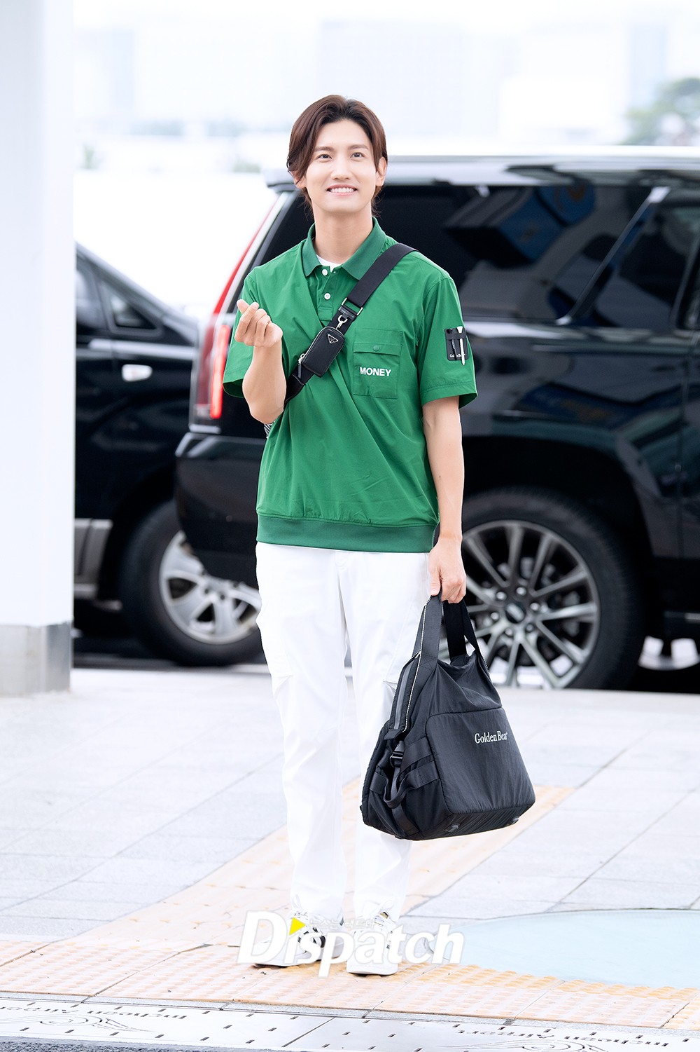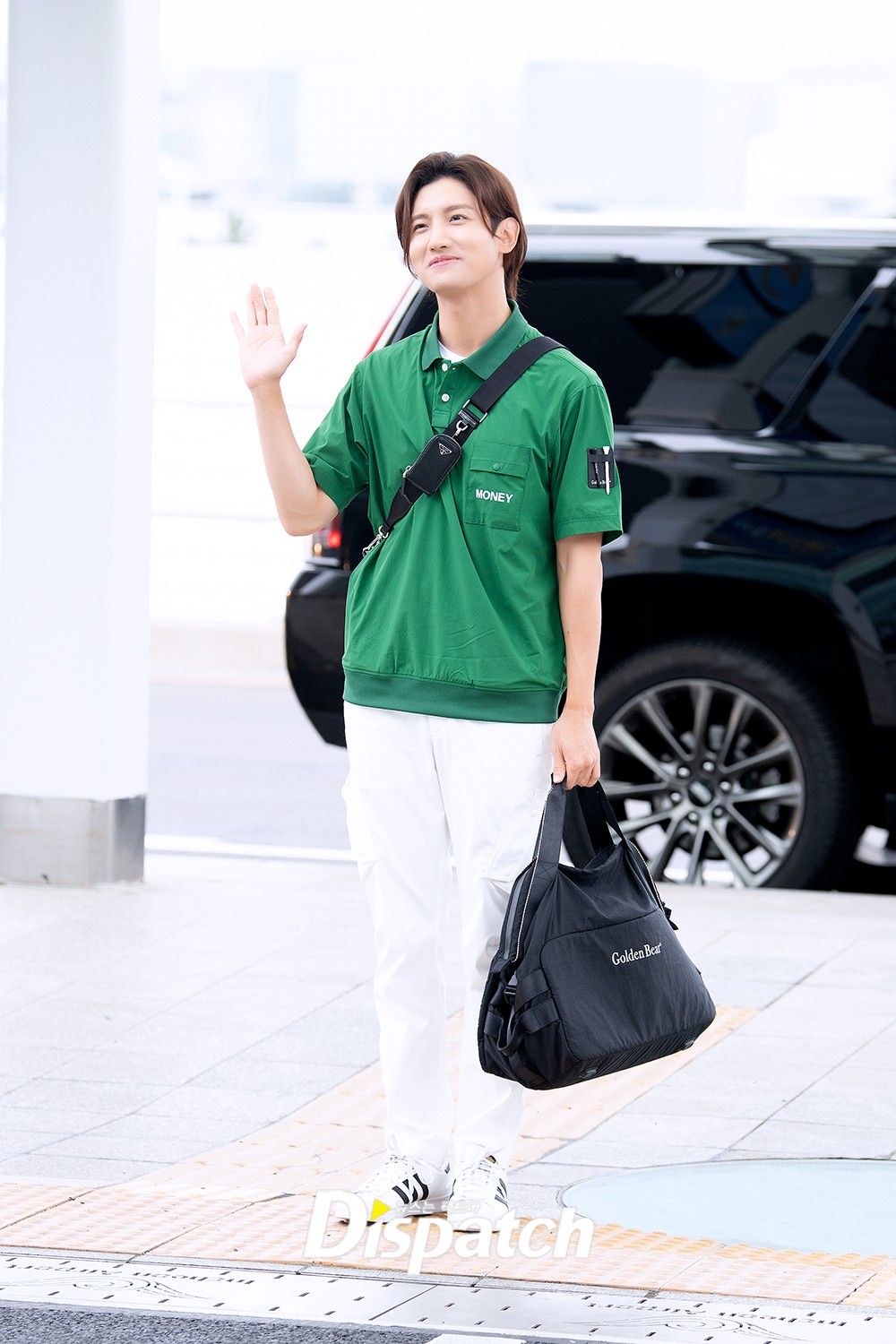 최강창민은 이날 베이지 팬츠에 그린 셔츠로 댄디한 공항패션을 연출했다. 조각같은 비주얼과 훈훈한 분위기가 돋보였다.