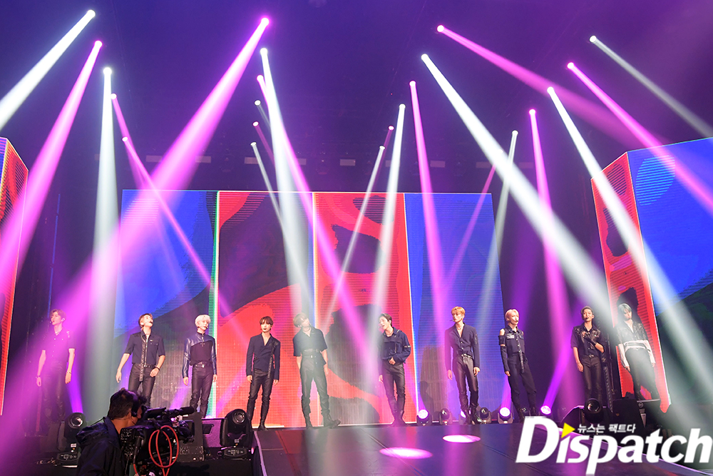더보이즈= 멤버들은 가벼운 옷차림으로 분위기를 반전시켰다. 곡 제목인 ‘스릴라이드’가 반복되며 무대를 시작했다. 멤버들은 일렬로 기차를 만들어 돌출 무대를 향해 달려 나왔다.