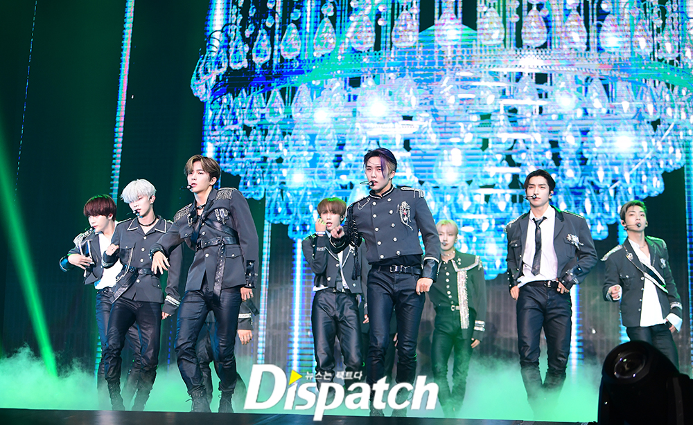 더보이즈= 견장이 달린 제복 스타일의 옷을 입고 등장했다. 멤버들은 매혹적인 리듬에 맞춰 부드러운 웨이브를 선보였다. 곡 후반부, 검은 천을 활용한 춤으로 섹시미를 더했다.