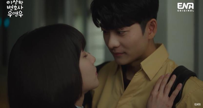 용기를 낸 우영우가 이준호에게 한 발짝 다가가 조심스럽게 키스했는데요.