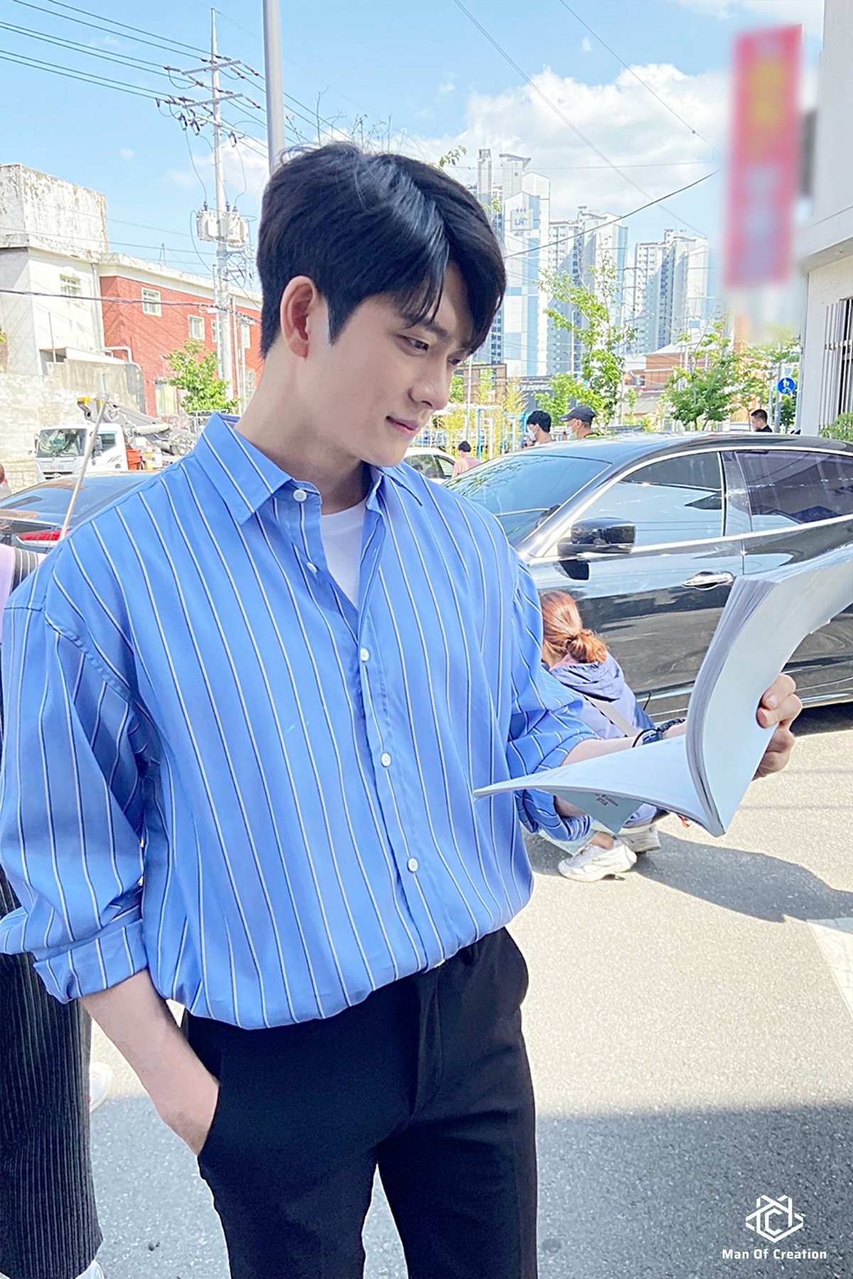 맨오브크리에이션은 지난 7월 29일 공식 포스트에 ENA '이상한 변호사 우영우'(이하 '우영우') 촬영현장 사진을 올렸습니다. 이준호 역으로 분하는 강태오의 모습이 담겼는데요.