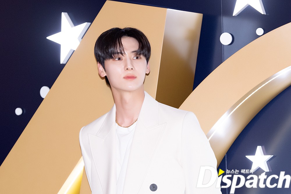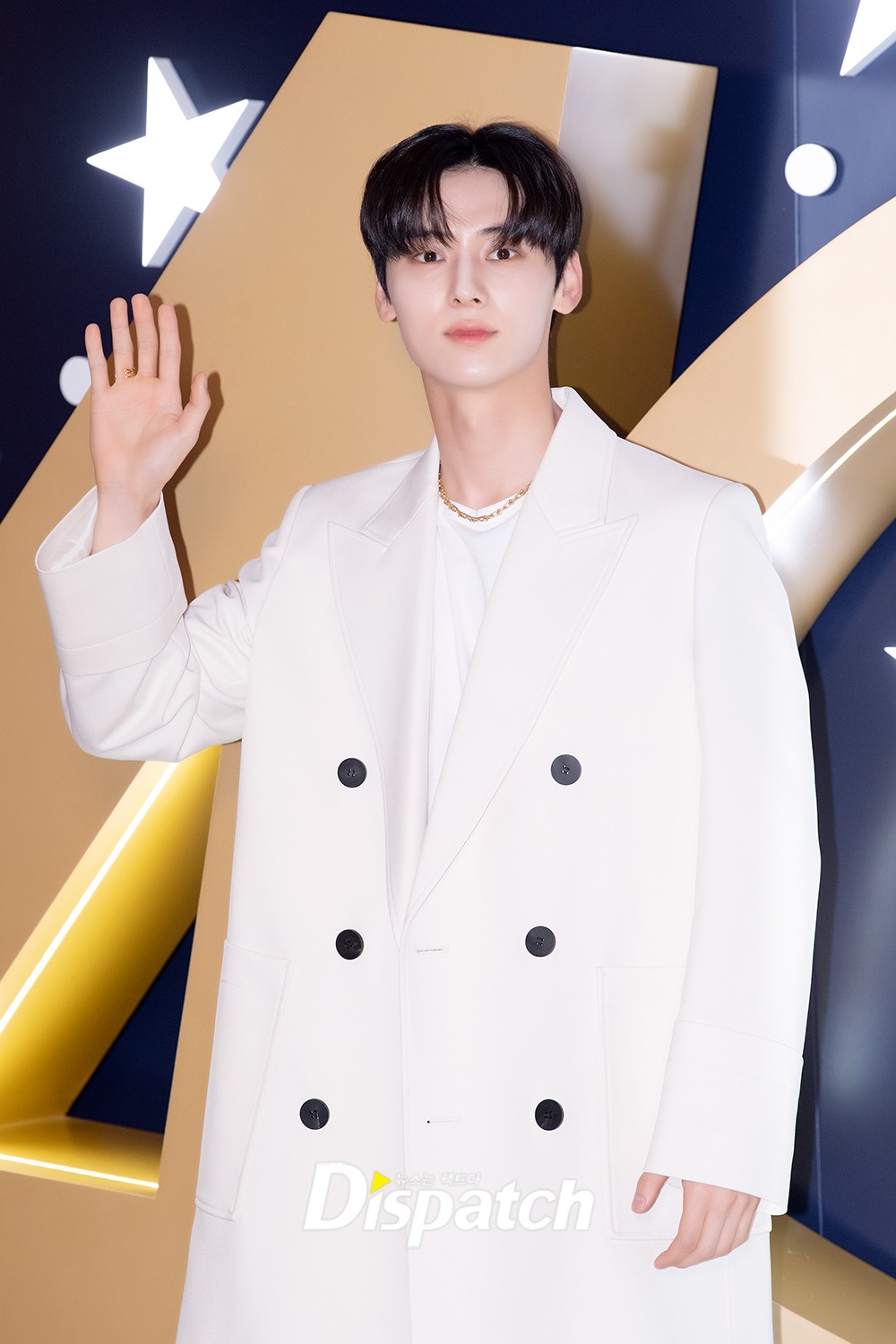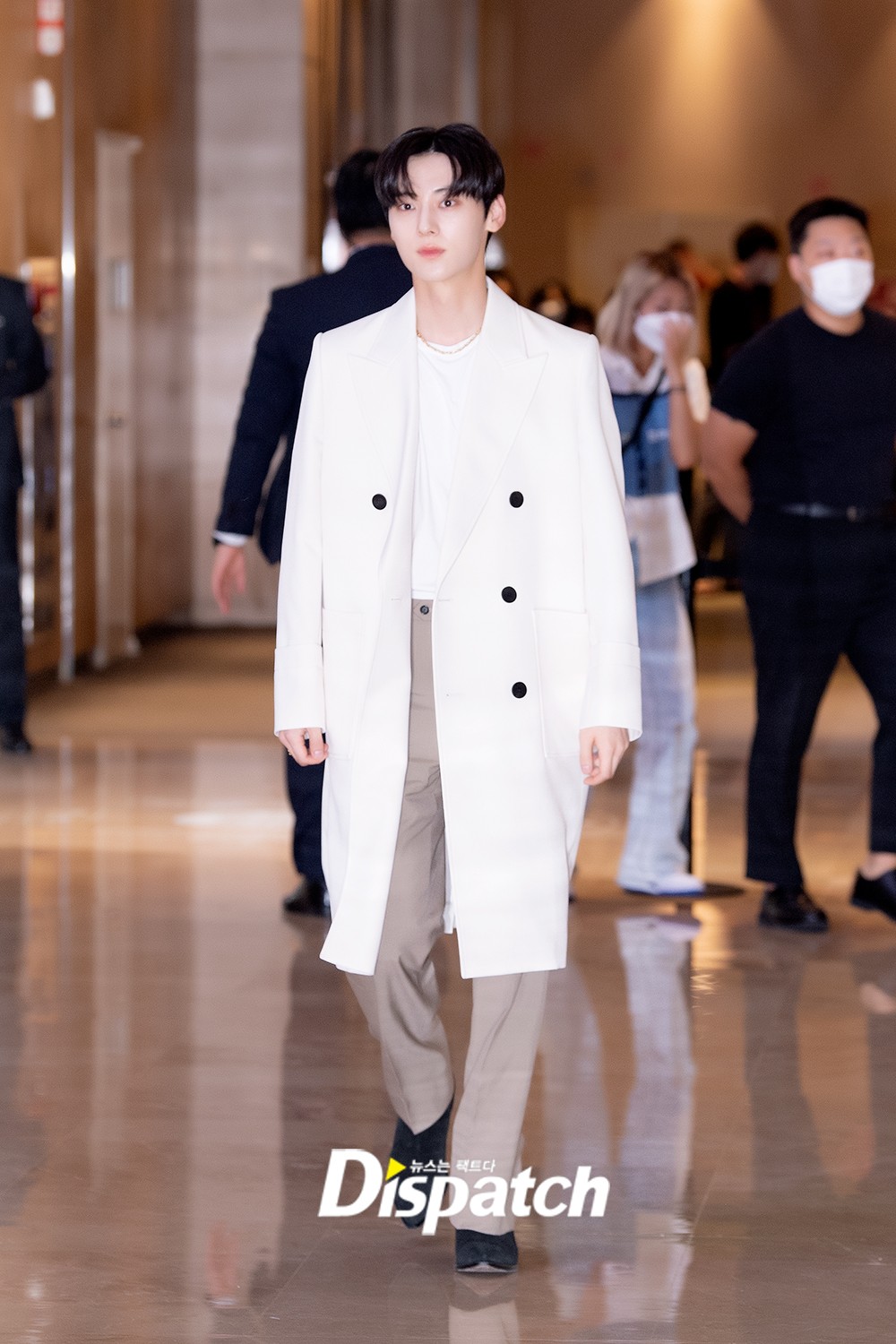 황민현은 이날 조각같은 비주얼로 시선을 사로잡았다. 우월한 비율도 돋보였다.