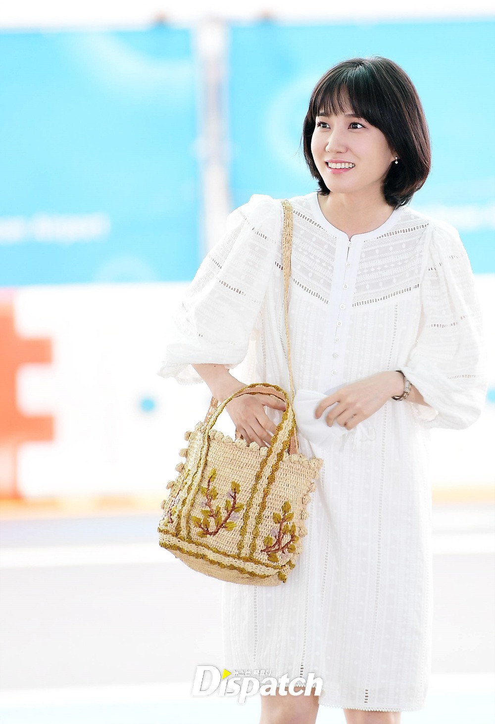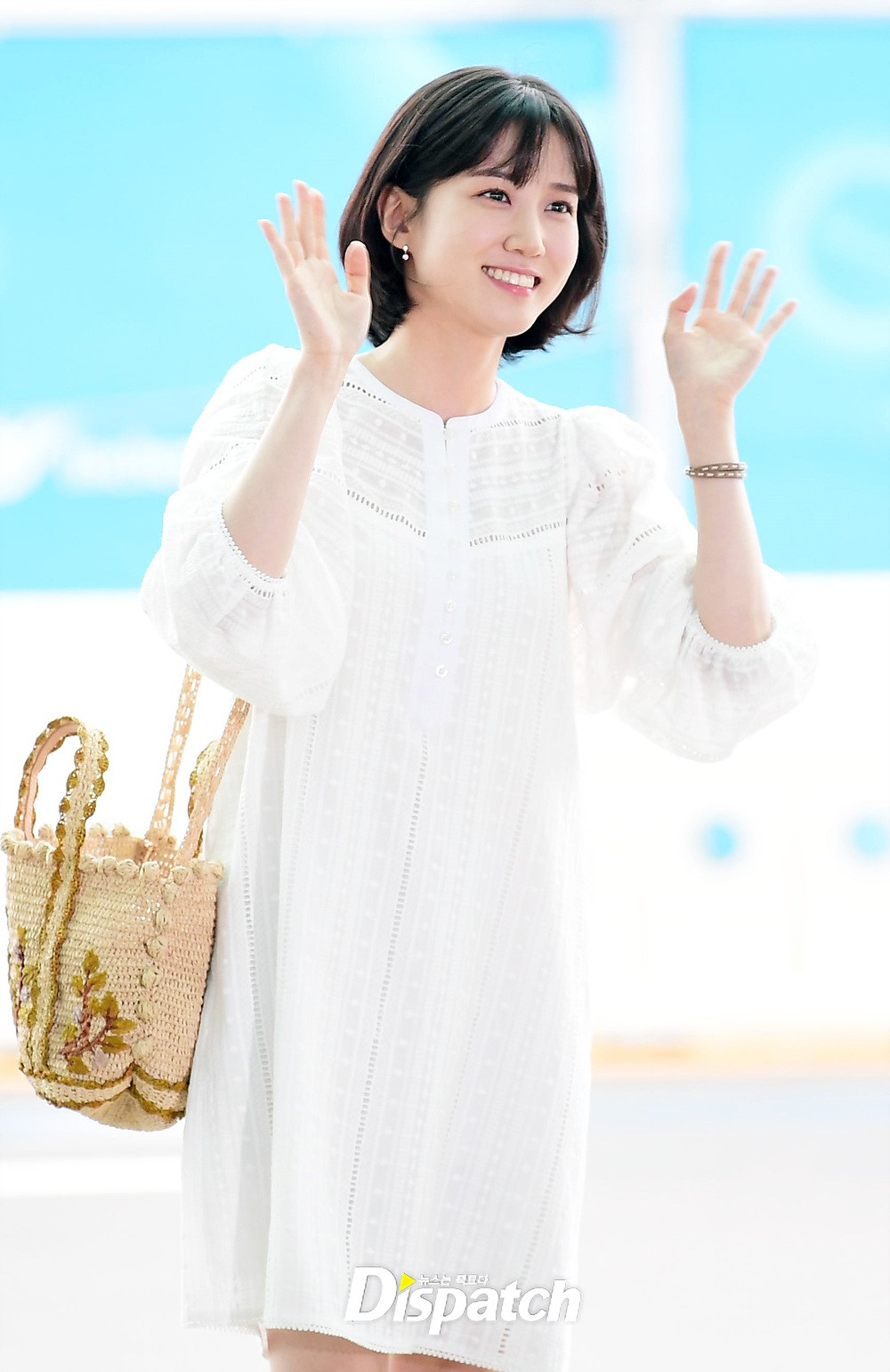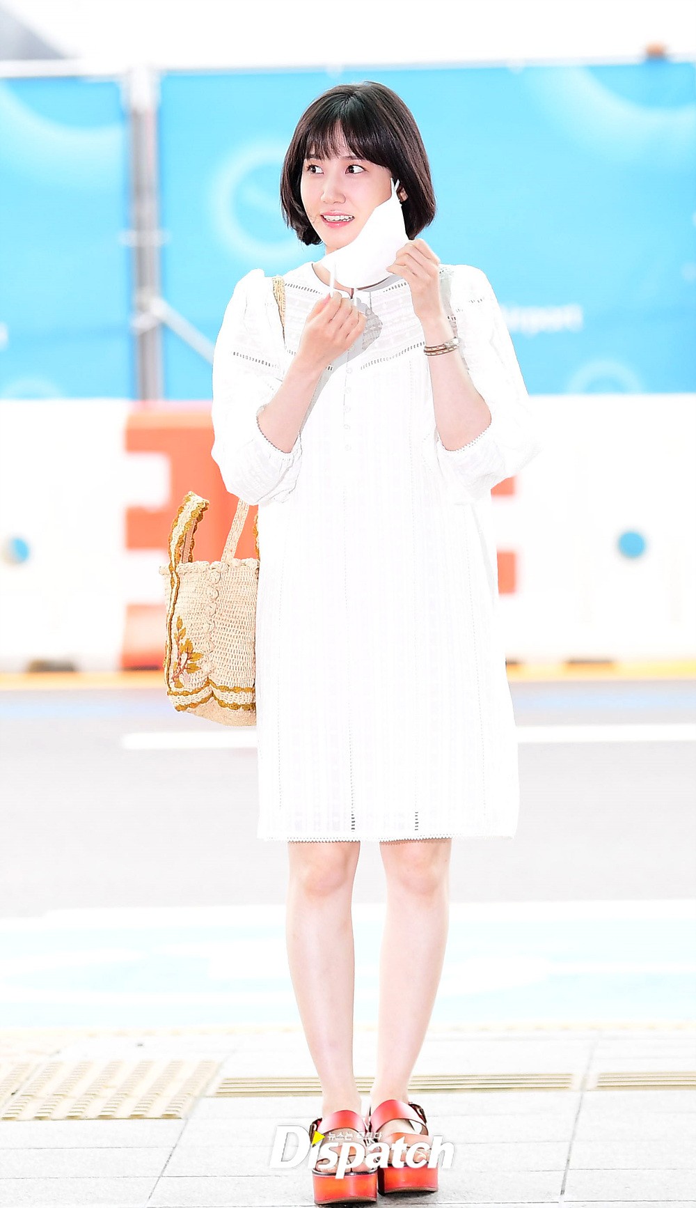박은빈은 화이트 컬러의 원피스로 청순미를 뽐냈다. 공항에 모인 취재진을 향해 환한 미소로 포즈를 취했다.