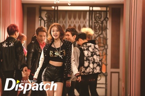 효민은 펑크룩을 선보였습니다. 블링블링 티셔츠에 핑크색 퍼를 매치했습니다. 고급스러운 이미지를 연출한건데요. 아이돌 패셔니스타라는 수식어에 어울리는 완벽한 코디였죠. 참, 효민은 이번 뮤비의 티저를 직접 찍었다고 하네요.