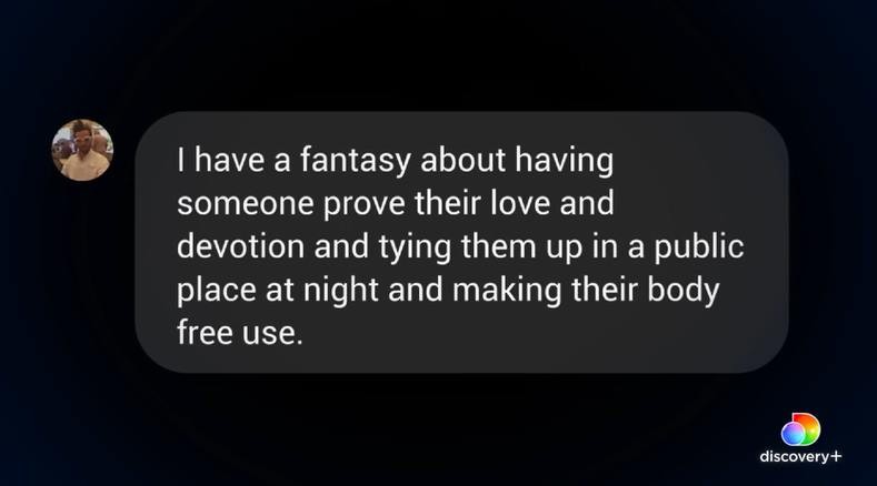 공개된 메시지에서 아미 해머는 "나는 누군가 자신의 사랑과 현신을 증명하게 하고 밤에 공공장소에서 그들을 묶고 아무나 자유롭게 사용 하는 것에 환상이 있다"고 말하고 있었는데요.