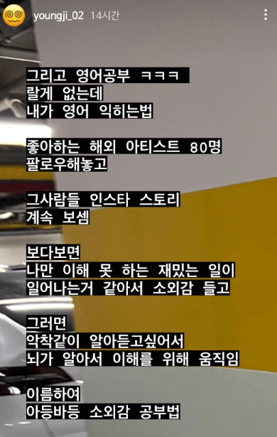 이어 "보다 보면 나만 이해 못하는 재밌는 일이 일어나는 거 같아서 소외감 든다"며 "그럼 뇌가 알아서 이해를 위해 움직인다. 이름하여 아등바등 소외감 공부법"이라고 덧붙여 웃음을 자아냈는데요.