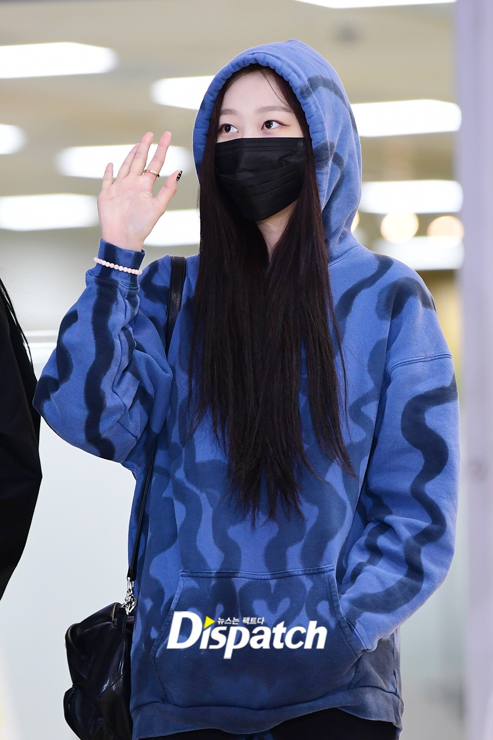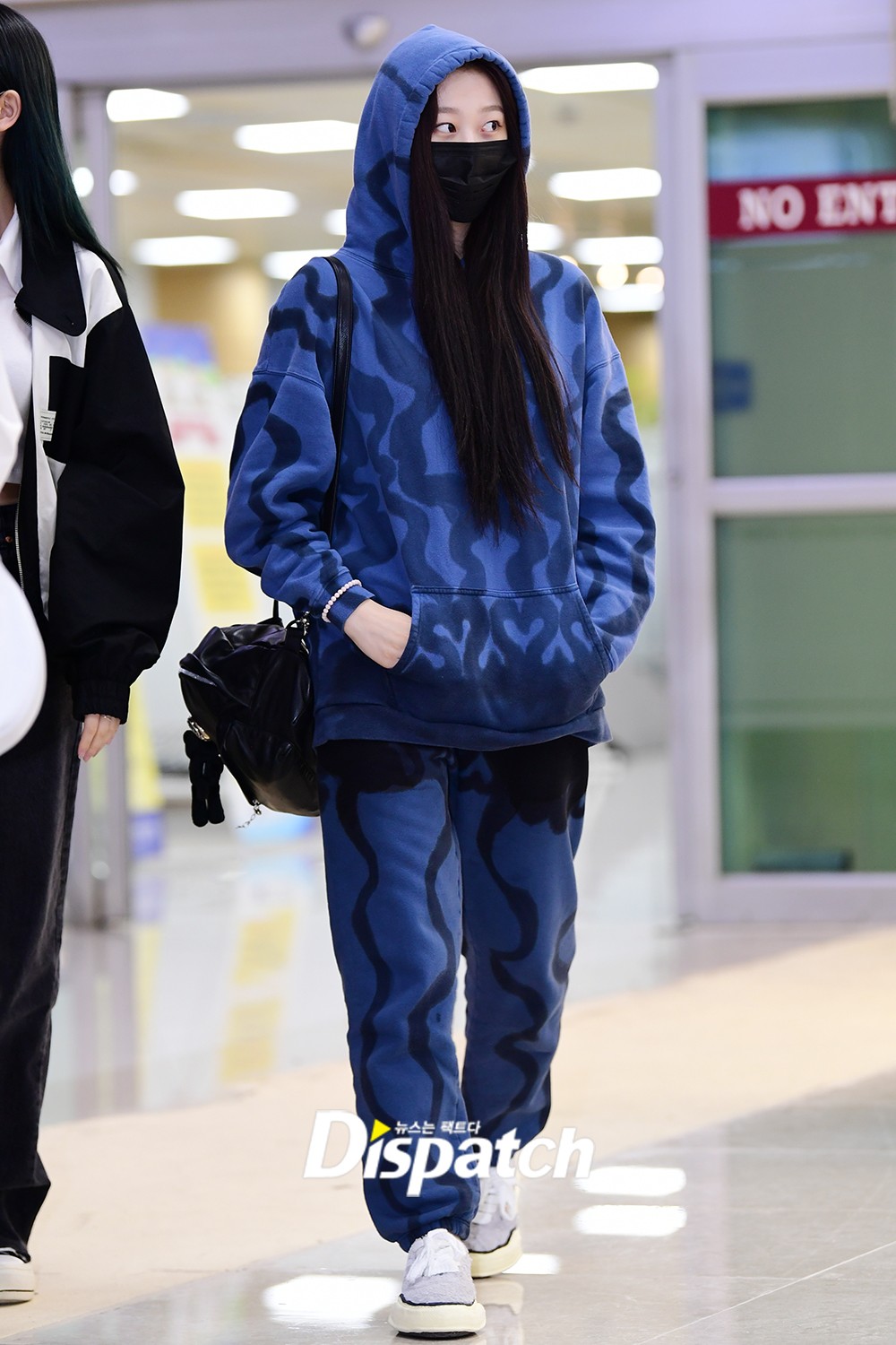지젤은 파란색 깔맞춤 옷으로 시선을 끌었다. 귀여운 외모가 돋보였다.