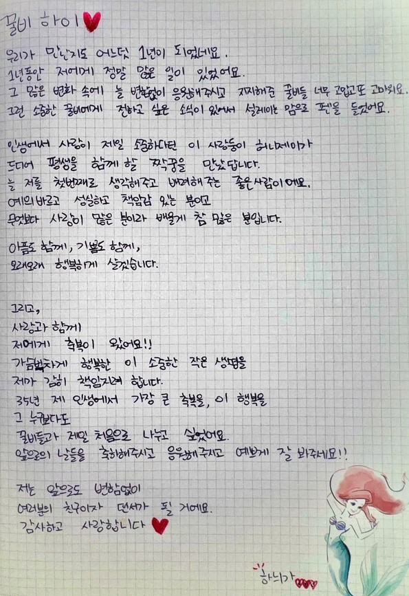 그는 "올해가 가기 전 결혼식을 올리고 미래를 향해 한 걸음씩 함께 걸어가려고 한다"면서 "그 누구보다 절 행복하게 만들어주는 제 짝꿍과 앞날을 격려해주시면 좋겠다"고 당부했습니다.