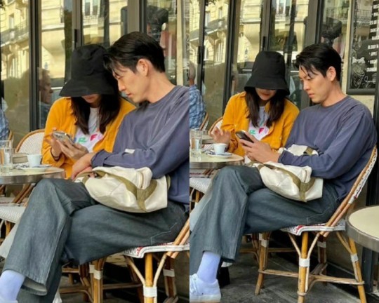 16일 중국 웨이보에는 두 사람이 파리의 한 노천카페에서 다정한 한 때를 보내는 사진이 공개됐습니다. 현지에서 두 사람을 목격한 중국 팬이 촬영한 것으로 추정되는데요.