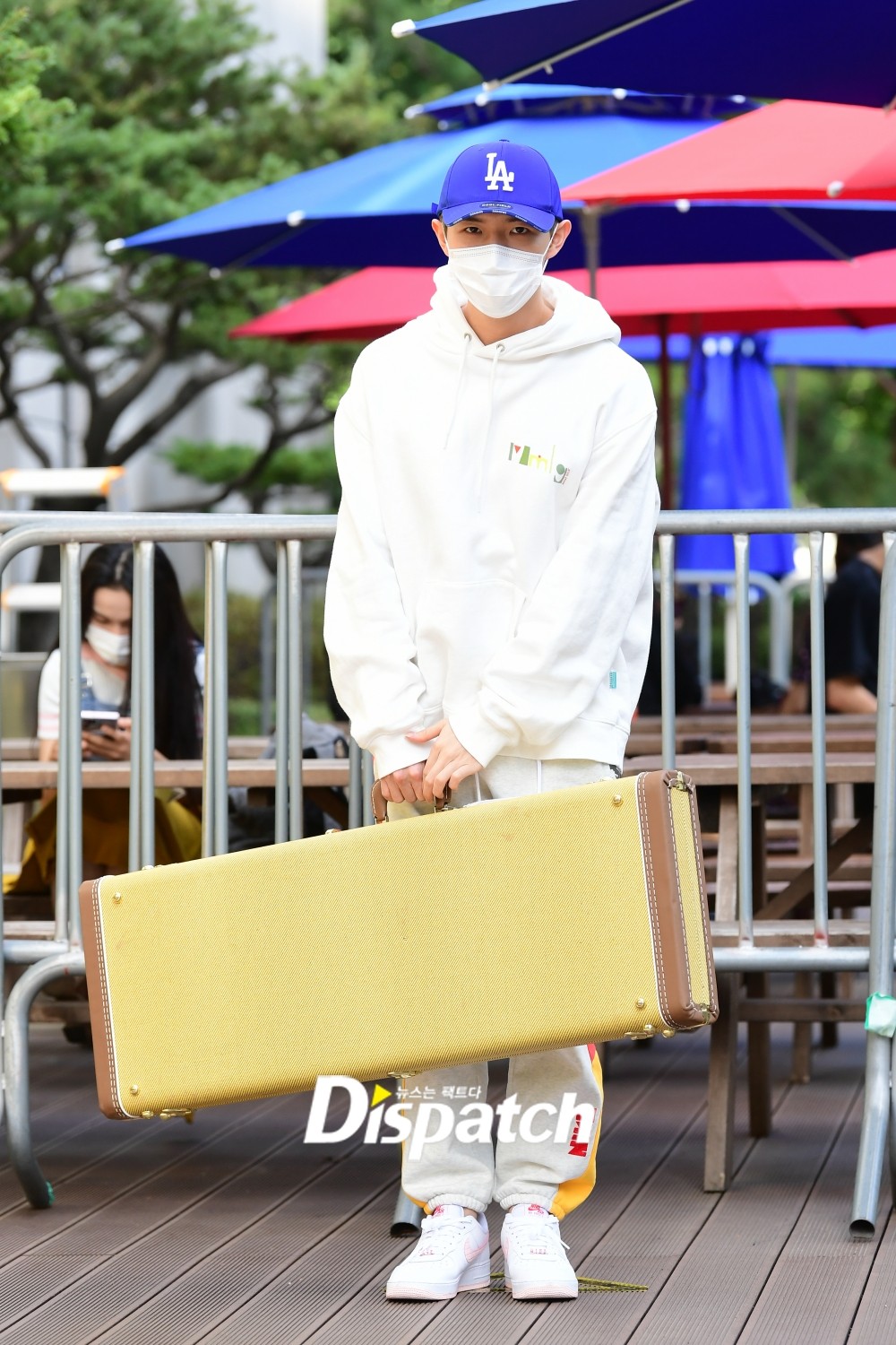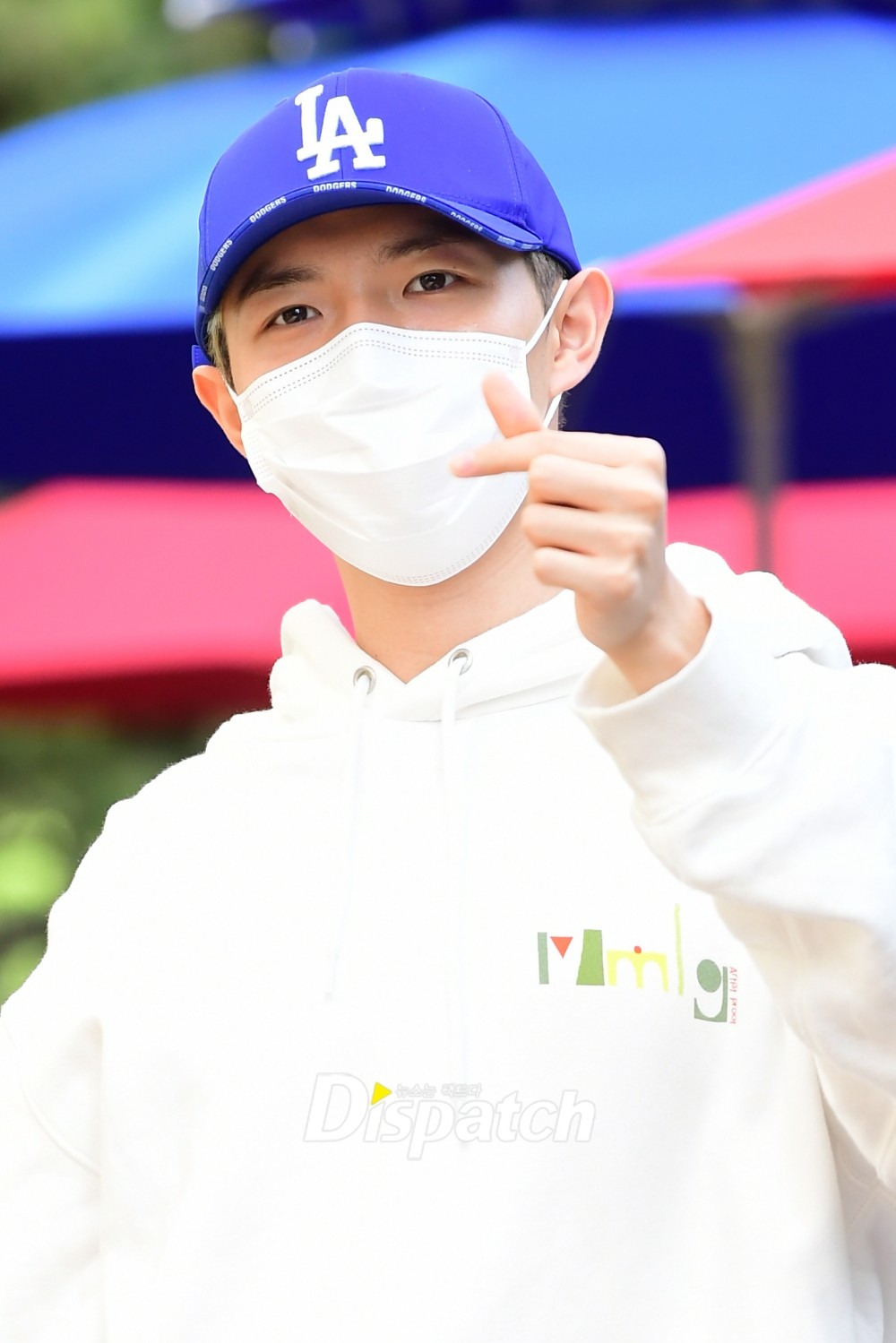 김재환은 볼캡과 후드 티셔츠로 편안한 출근룩을 완성했다.