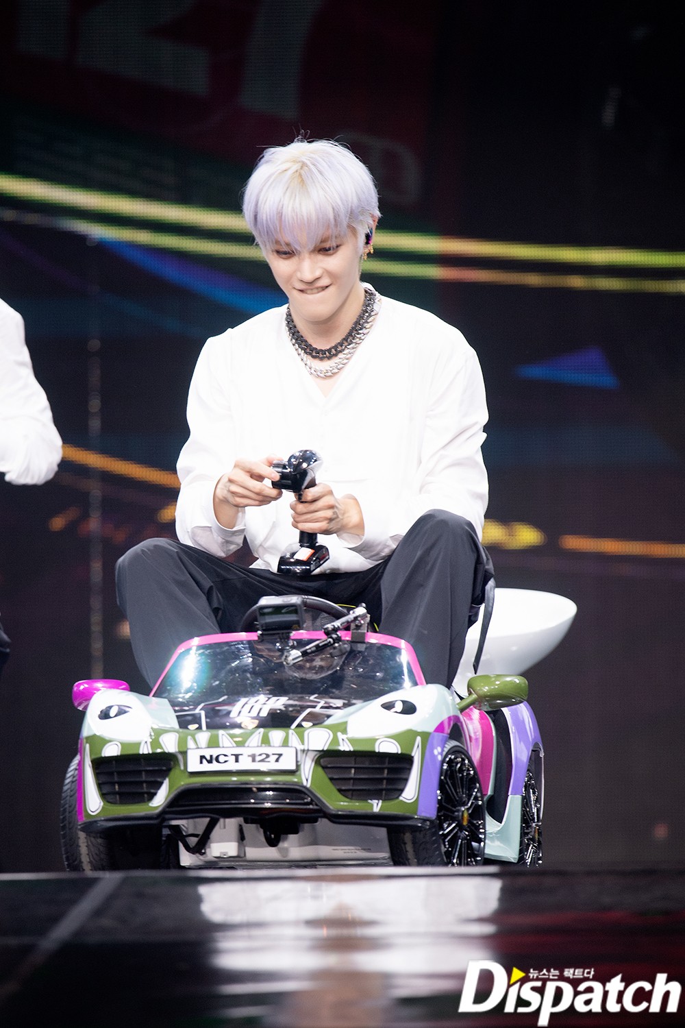 이날 슈퍼카 론칭쇼(?)까지 열렸습니다. 멤버들은 앨범 콘셉트에 맞춰 곡을 소개했는데요. 론칭쇼의 주인공은 태용.