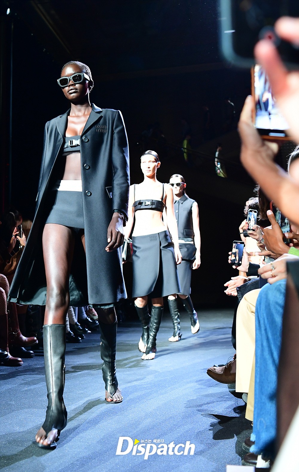 장원영은 1열에서 런웨이를 밝혔습니다. 할리우드 배우 에버 앤더슨, 모델 알렉사 청, 엘라 엠호프 등과 함께 감상했죠.