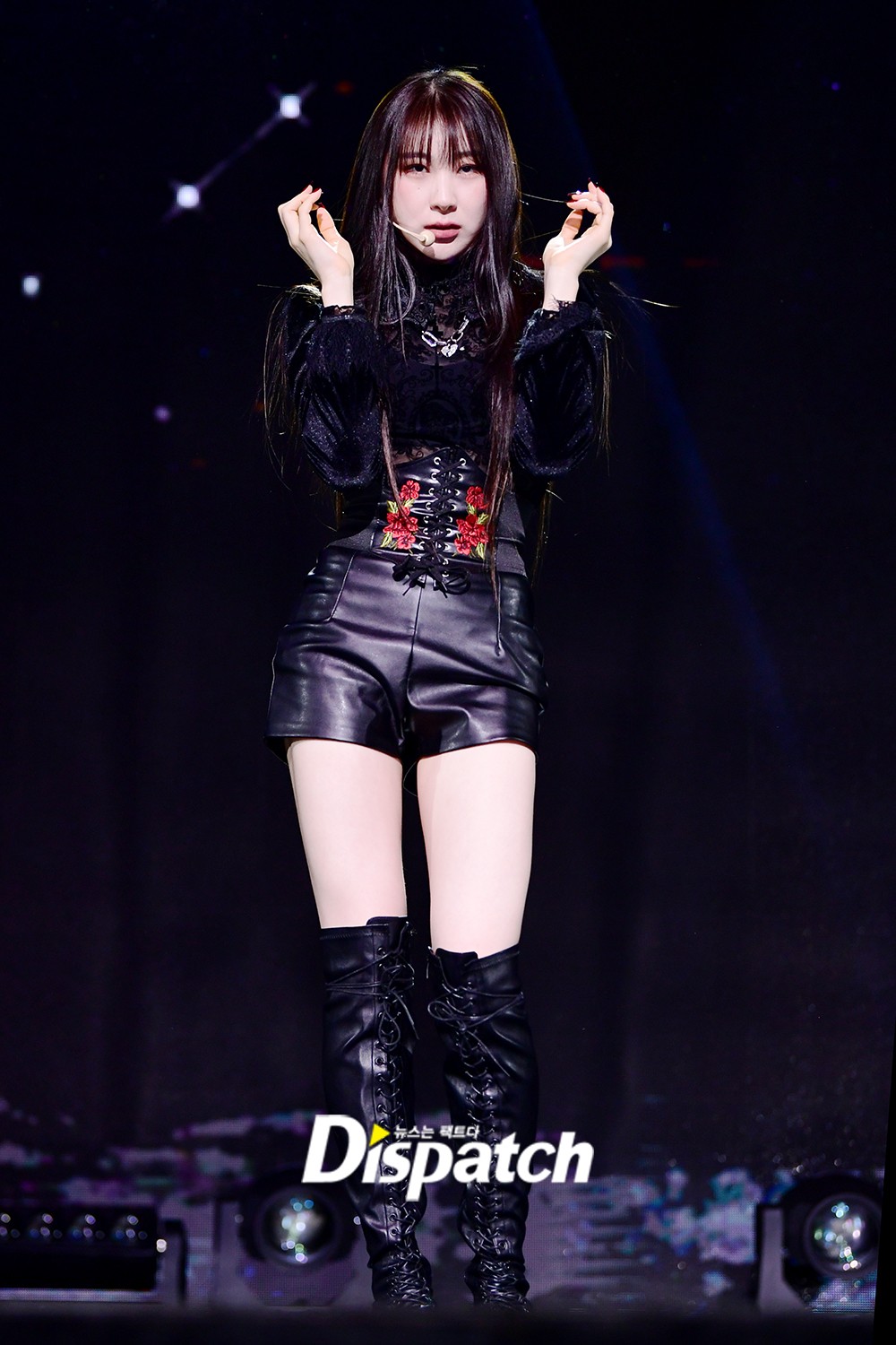 이채연은 올블랙 패션으로 뱀파이어의 모습을 연출했다. 시크하면서도 러블리한 미모가 돋보였다