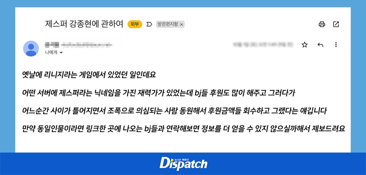 '디스패치'에 <제스퍼 사건>에 대한 제보도 이어졌고요.