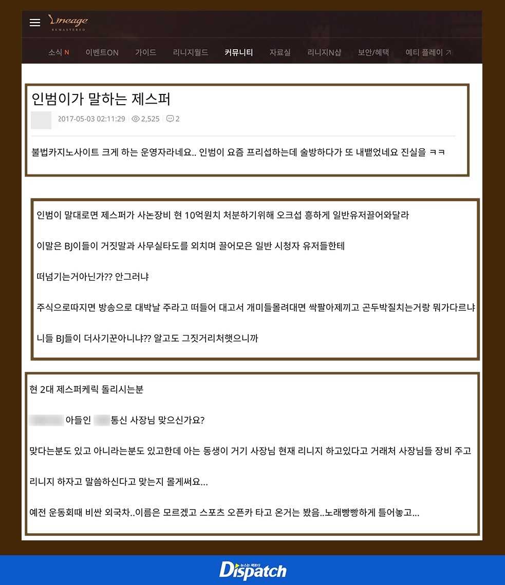 실제로 리니지 관련 게시판에서 '제스퍼'를 발견하는 건 그리 어려운 일이 아니었습니다.