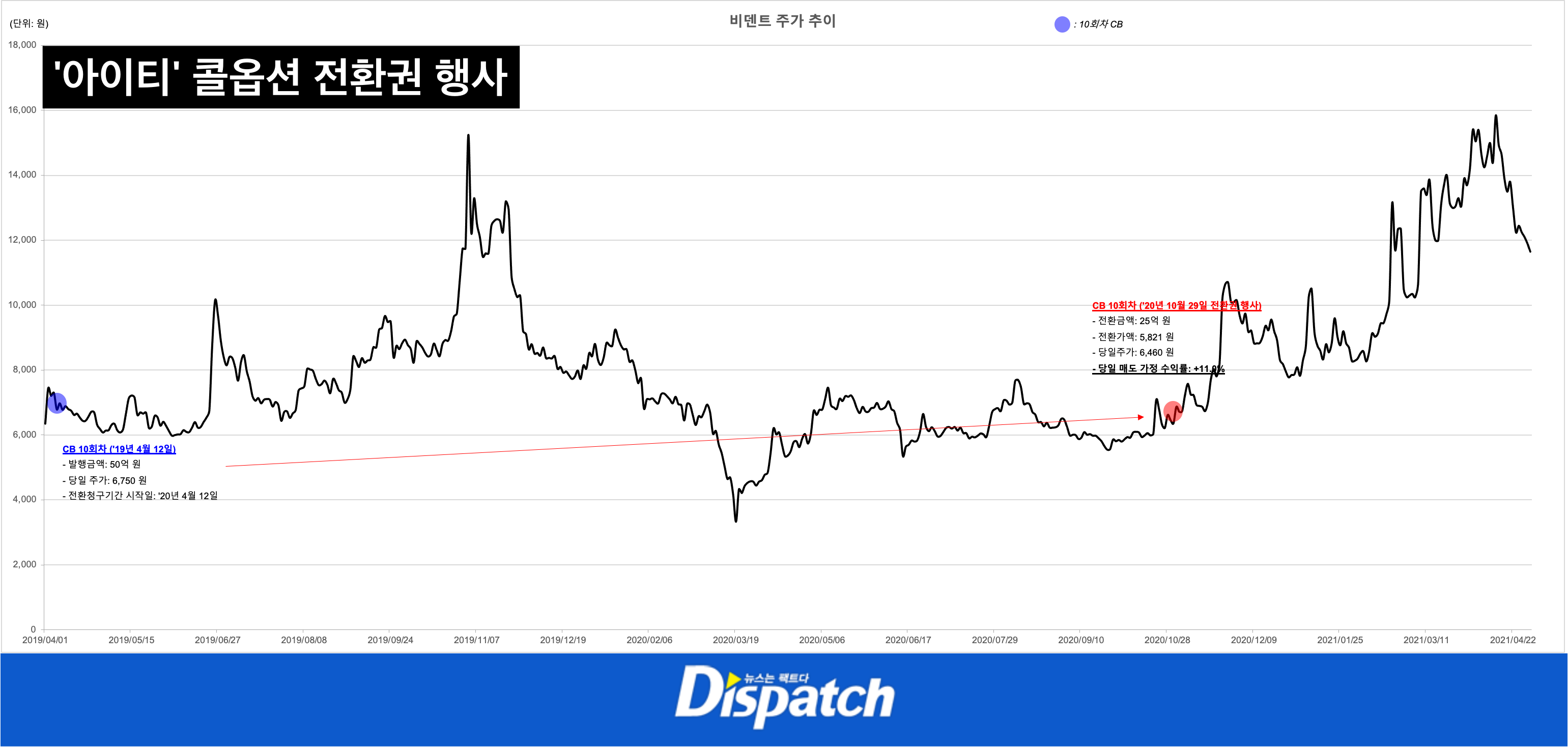 2020년 9월 25일, 비덴트는 10회차 전환사채 콜옵션 권리를 아이티에 넘깁니다.