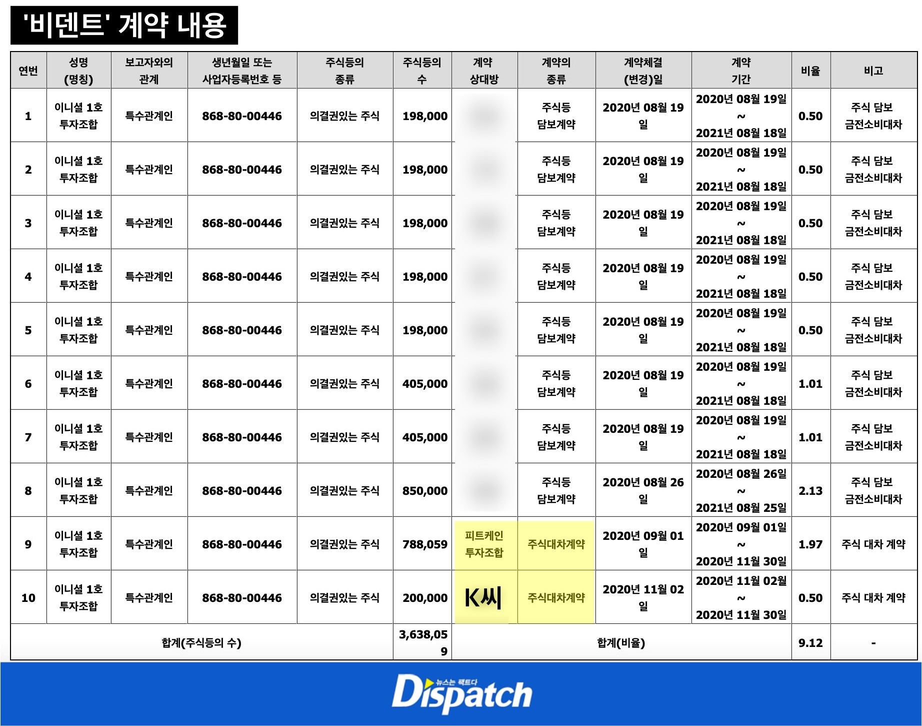 (참고로, 안성현은 '이니셜'의 전신인 '비트갤럭시아' 조합원이었습니다. 그는 자신의 주식 전부를 이니셜 측에 넘겼습니다. 안성현은 '디스패치'에 "지분이 얼마 안 됐다. 기억이 안 난다"고 말했습니다.)