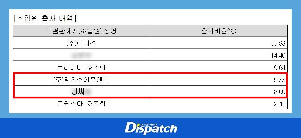 디스패치 : J씨는 '이니셜1호투자' 조합원이었습니다. 회장님 돈인가요?