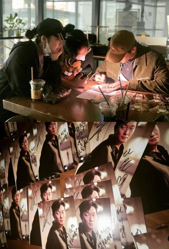 손석구는 "여전히 고뇌하는 감독님과 사진도 찍고, 간만에 만난 스탭분들께 싸인도 드리고. 즐거운 시간 보내다 왔습니다"라고 전했습니다.