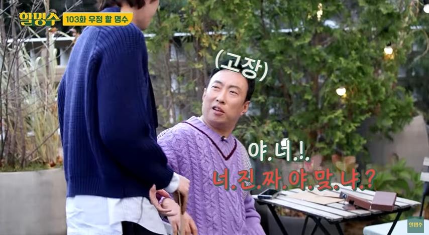 진은 "기억난다. 화장실에서 뵀었다. 빨리 사진 찍지 말고 꺼지라고 했었다"고 폭로했고, 박명수는 "말 좀 조심해서 해. 꺼지라고 하면 난..."이라고 당황한 모습으로 웃음을 안겼습니다.