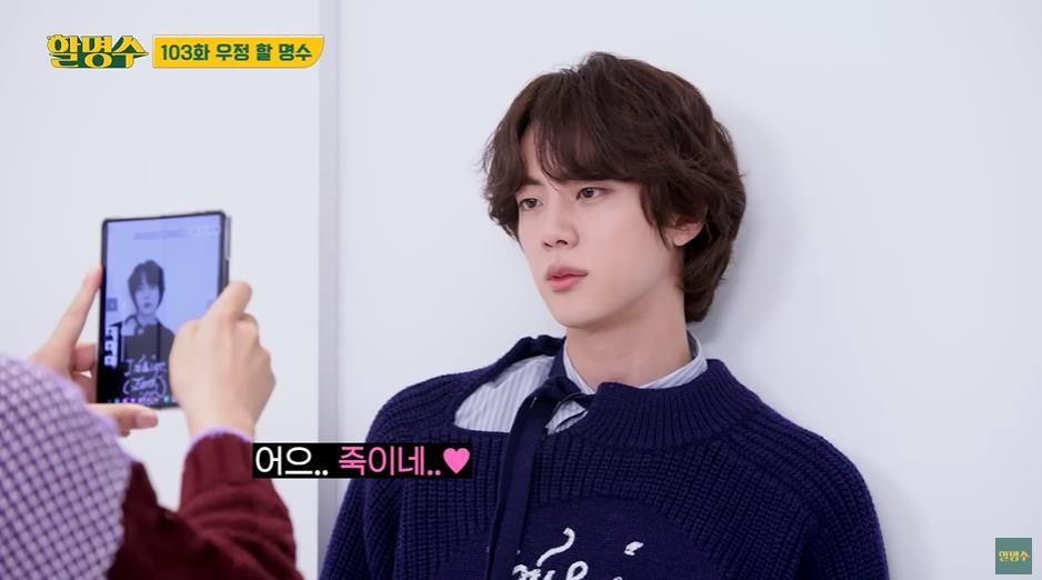 박명수는 프로패셔널한 진의 모습에 "어으 죽이네", "(포즈가) 자동이네 자동", "뭐 이런 애가 다 있대?", "(진이) 다 알아서 한다"며 연달아 감탄하기도 했습니다.