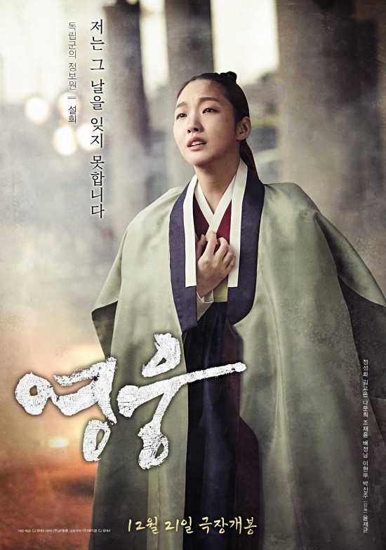 김고은은 독립군의 정보원 ‘설희’ 역을 맡았다. 캐릭터의 강한 내면이 고스란히 느껴졌다. “저는 그 날을 잊지 못합니다”는 문구로 궁금증을 불러일으켰다.