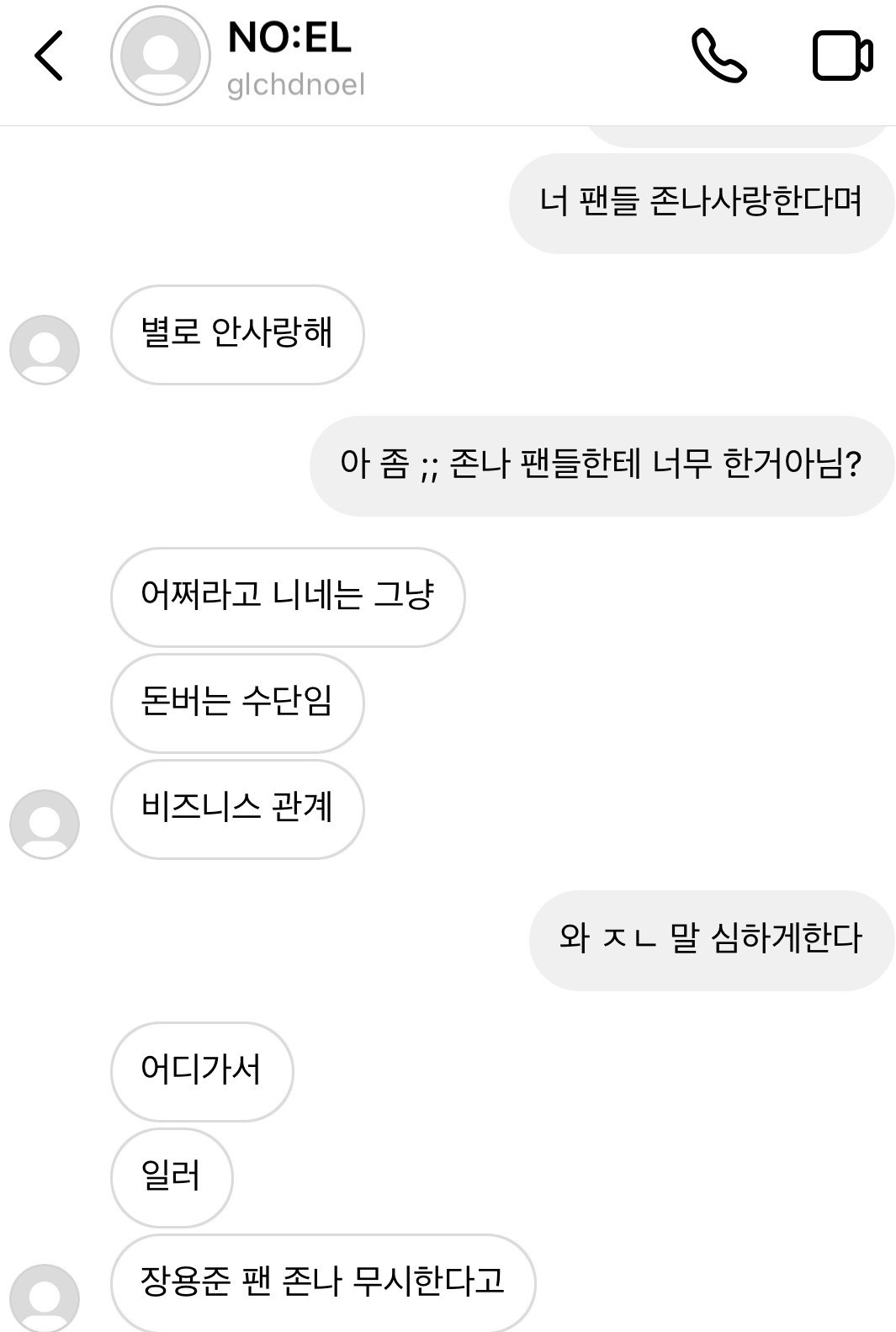 그는 "너무 한 거 아니냐"는 말에 "어쩌라고. 너네는 그냥 돈 버는 수단임. 비즈니스 관계"라며 "어디 가서 일러라. 장용준 팬 XX 무시한다고"라고 조롱했습니다.
