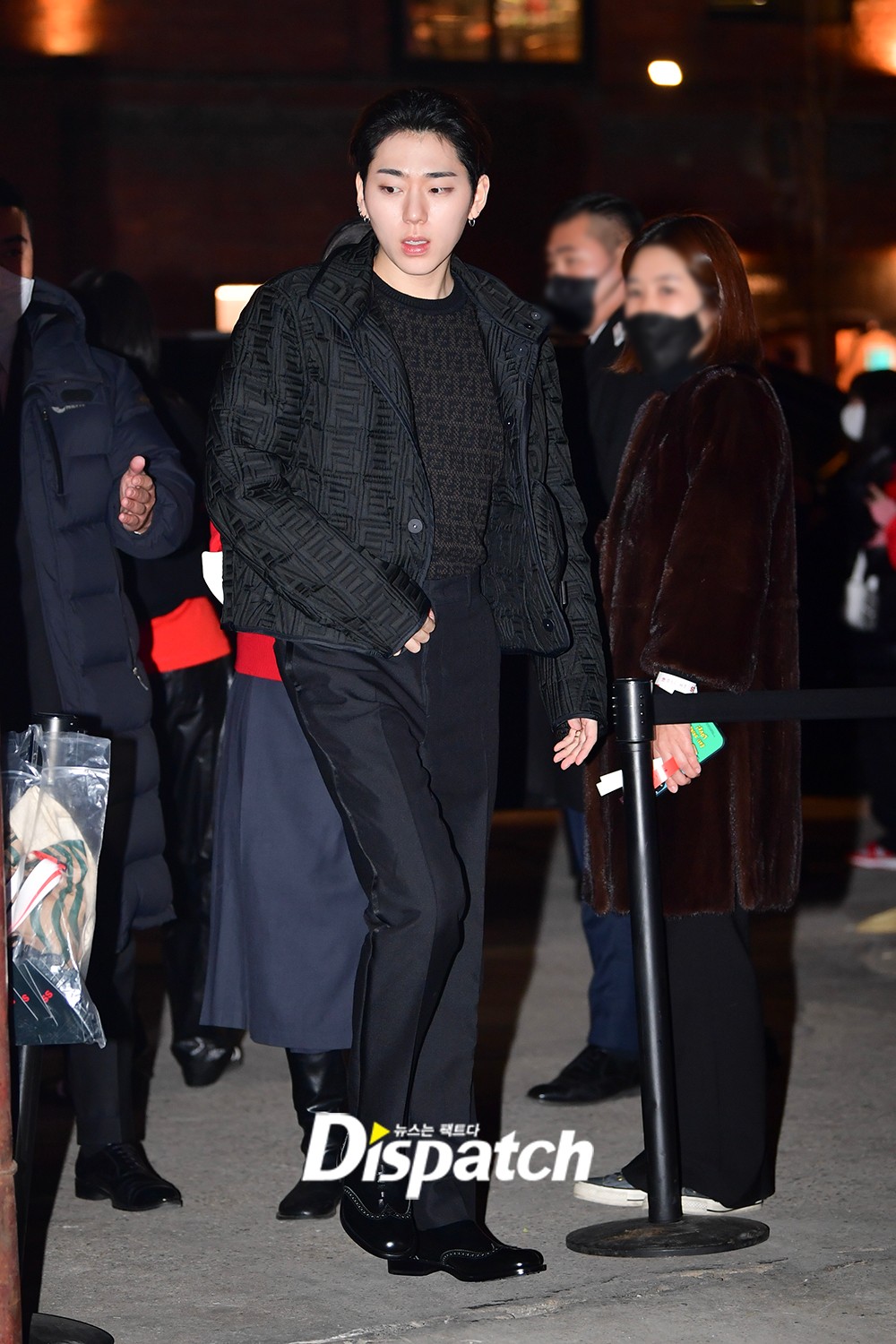 지코는 이날 독특한 패턴의 블랙 재킷에 슬렉스로 시크한 분위기를 연출했다. 스웨그 넘치는 포즈로 취재진의 이목을 사로잡았다.