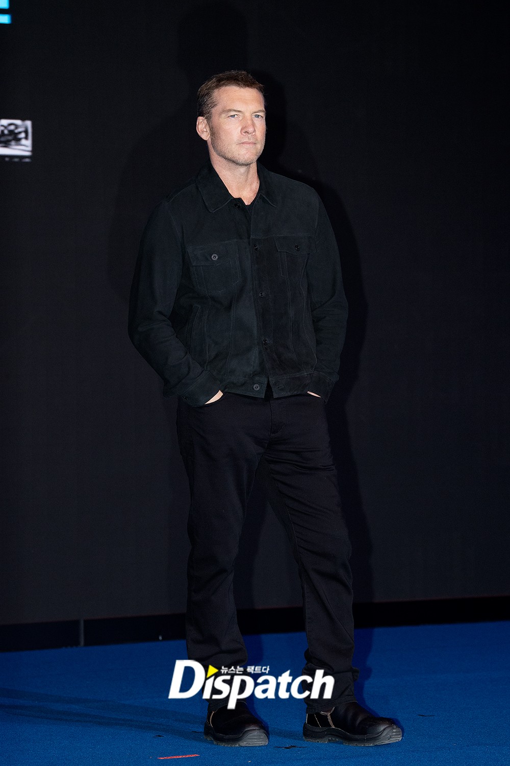 샘 워딩턴은 이날 올블랙 패션으로 중후한 매력을 뽐냈다. 조각같은 비주얼도 돋보였다.