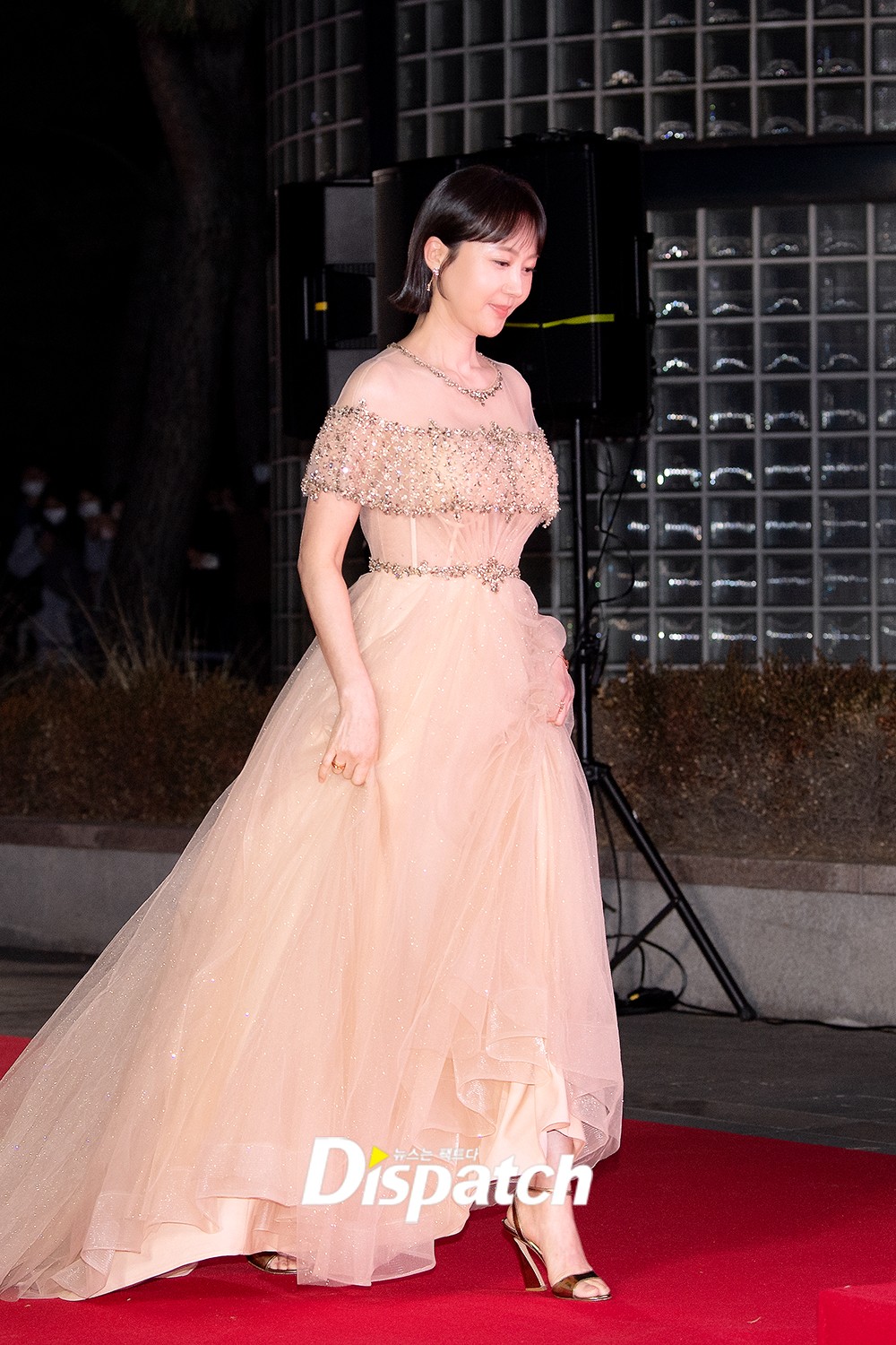 염정아는 이날 누드톤 드레스로 우아한 분위기를 뽐냈다. 완벽한 미모가 돋보였다.