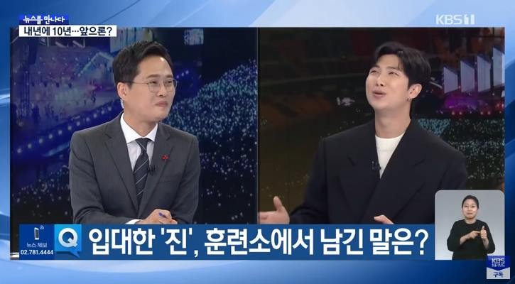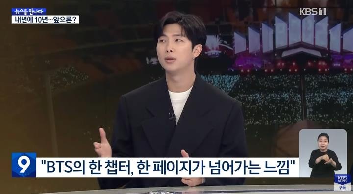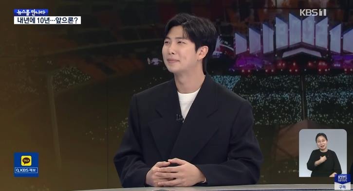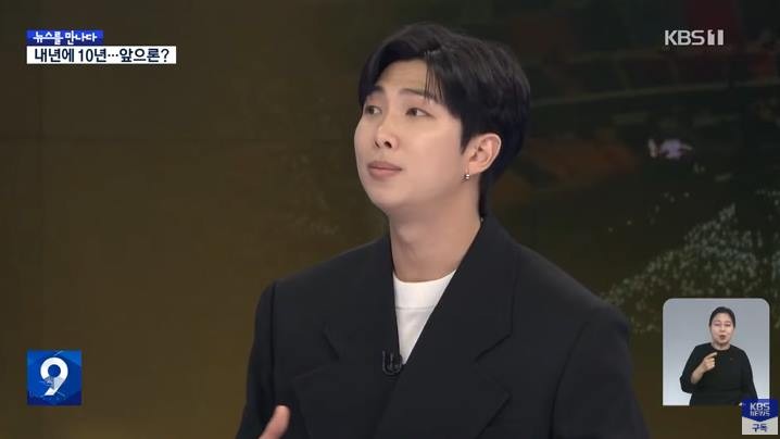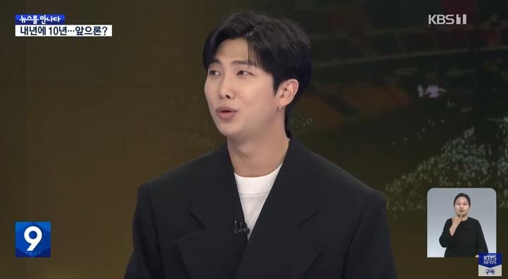 18일 방송된 KBS 1TV 'KBS 뉴스 9'의 '뉴스를 만나다'에 방탄소년단 RM이 출연했습니다.