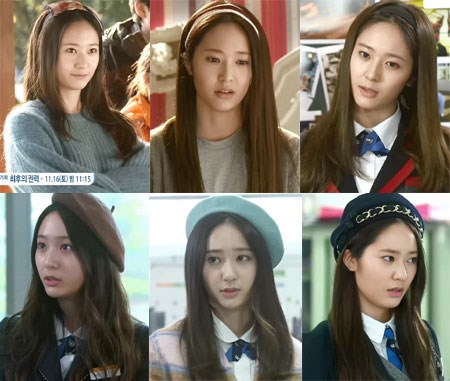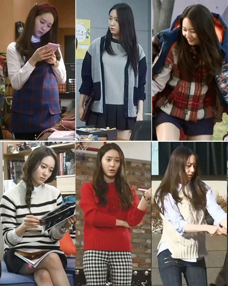 크리스탈은 극중 고등학생이지만 패션은 최첨단을 달리고 있다. 가장 즐기는 스타일은 교복이다. 럭셔리한 교복에 트렌드를 접목시켜 깜찍 발랄한 스쿨룩을 완성했다. 베레모와 헤어 밴드로 포인트도 줬다. 개성 강한 스쿨룩에 걸리시한 액세서리를 첨가, 상위 1% 여고생룩을 만들었다.