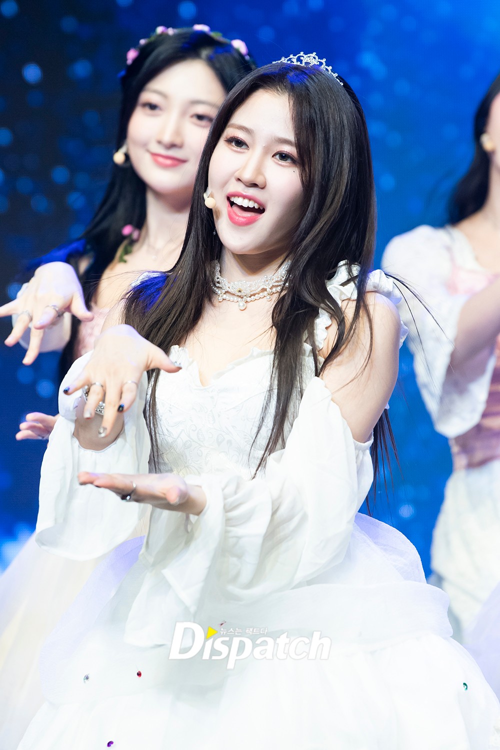 아라는 화이트 원피스로 청순한 매력을 뽐냈다. 손끝까지 완벽한 퍼포먼스로 시선을 끌었다.