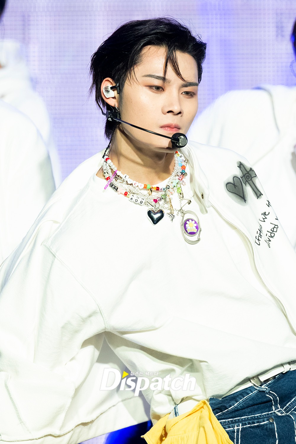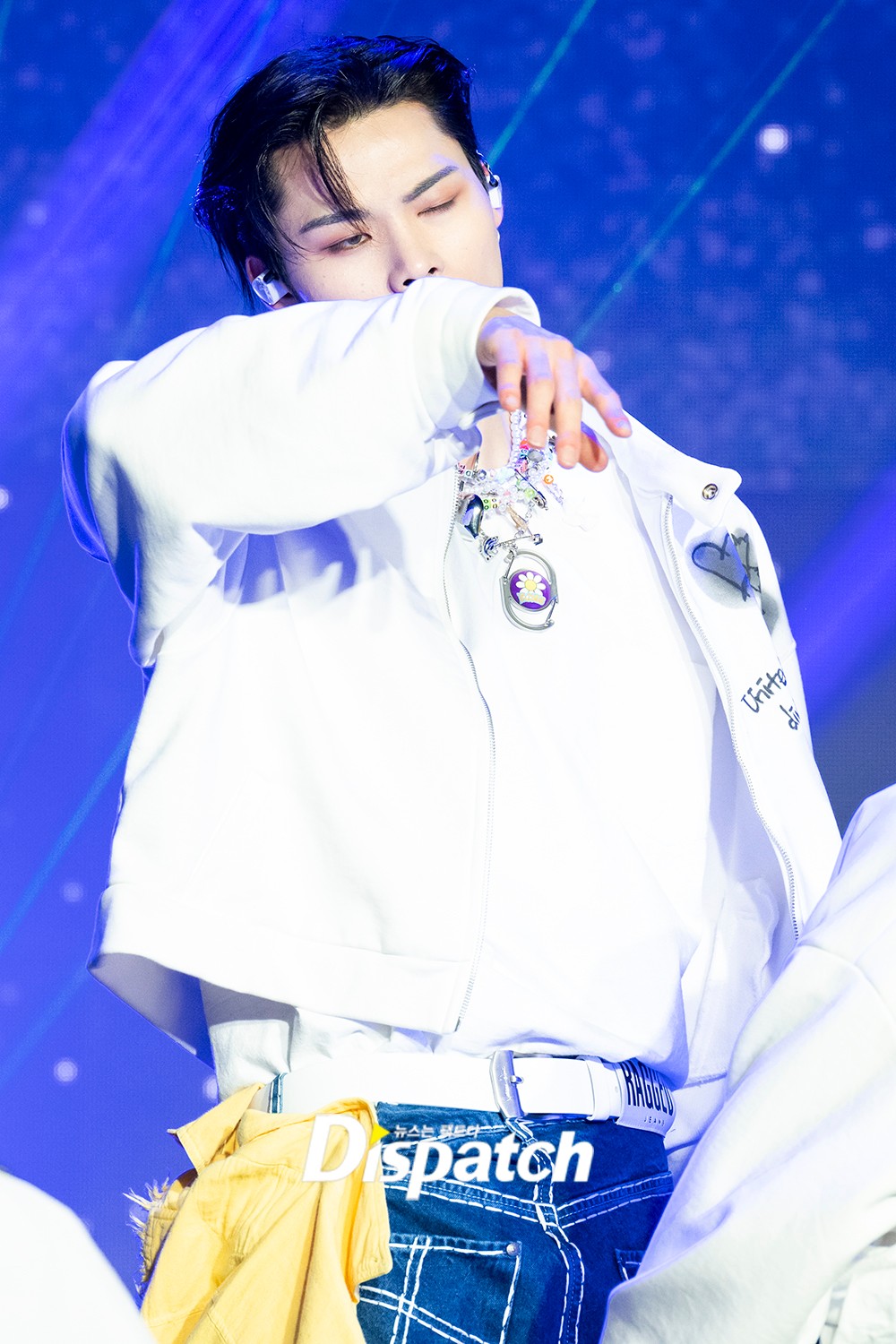 명호는 화이트 재킷에 청바지로 캐주얼한 분위기를 뽐냈다.