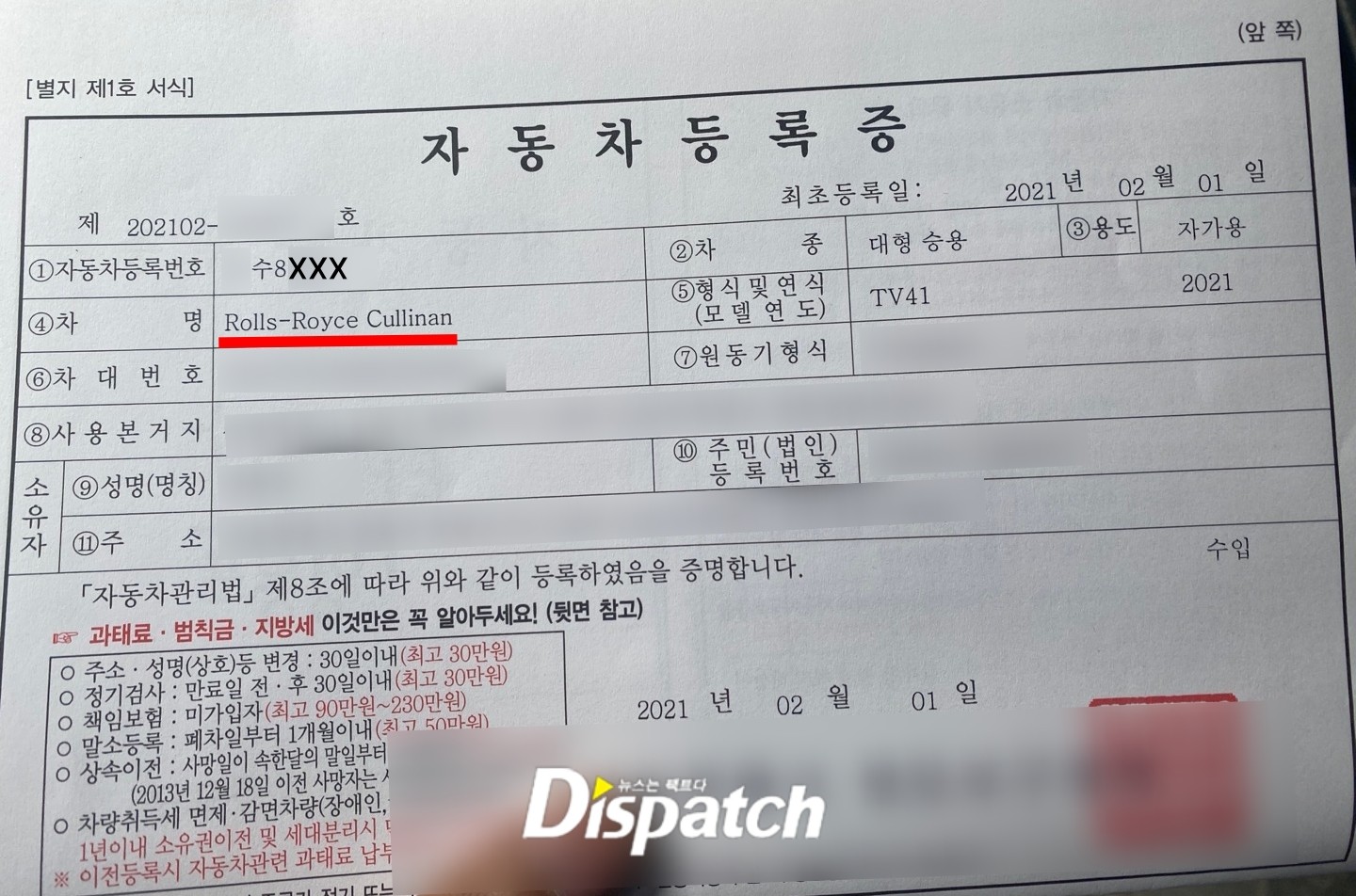 강종현은 이 돈으로 롤스로이스 컬리넌을 구입했다. '디스패치'는 2021년 1월 27일, A씨 증권계좌에서 4억 8,900만 원이 (주) 롤스로이스로 이체된 사실을 확인했다.