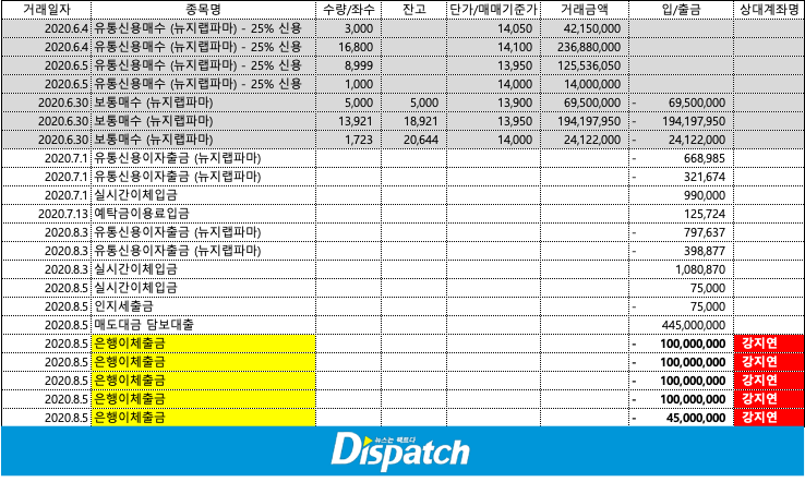 ‘디스패치’는 A씨 계좌에서 여동생 강지연 (대표) 계좌로 4억 4,500만 원이 흘러간 사실도 포착했다. 그 돈의 최종 목적지는 어디일까? 하지만 그녀는 오히려 당당했다.