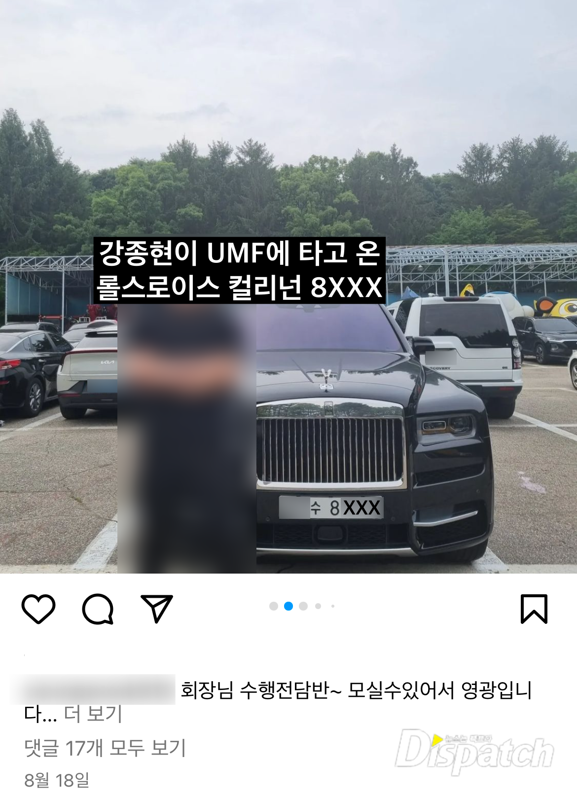 한 경호원이 개인 인스타그램에 롤스로이스 사진을 올렸다. 강종현을 지근거리에서 경호했다는 인증샷. 여기서 주목할 것은, 롤스로이스다.