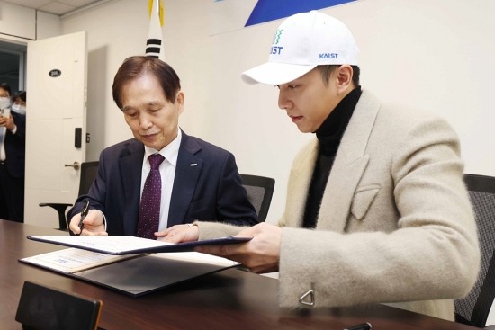 이승기는 3일 오후 카이스트 도곡캠퍼스에서 열린 발전기금 전달식에 참석했다. 국가 미래 경쟁력인 과학기술 발전을 위해 3억 원을 전달했다.