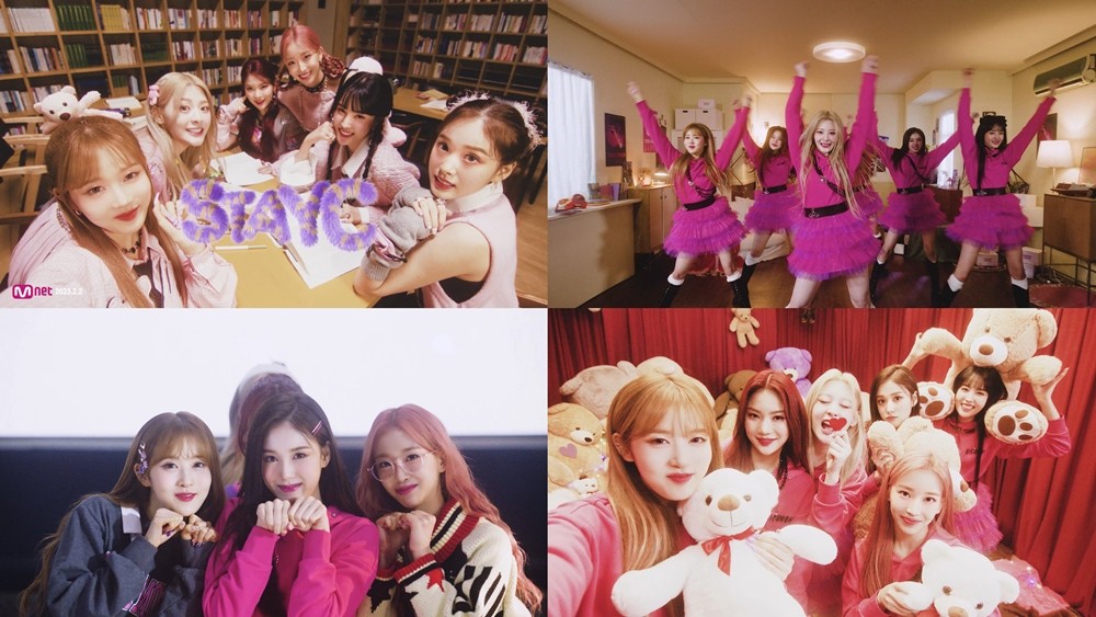 스테이씨는 12일 공식 SNS에 4번째 싱글앨범 '테디 베어'(Teddy Bear) 동명의 타이틀 곡 뮤직비디오 티저를 공개했다.