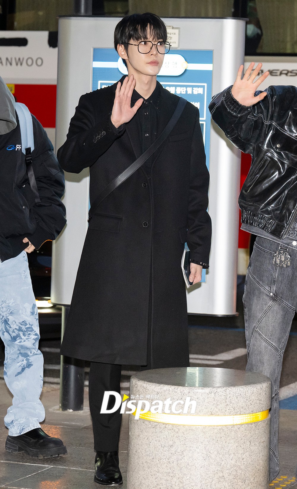 도영은 올블랙룩으로 시크한 공항패션을 선보였다.