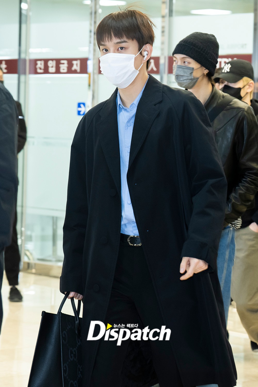 정우는 블랙 롱코트로 훈훈한 공항패션을 완성했다.