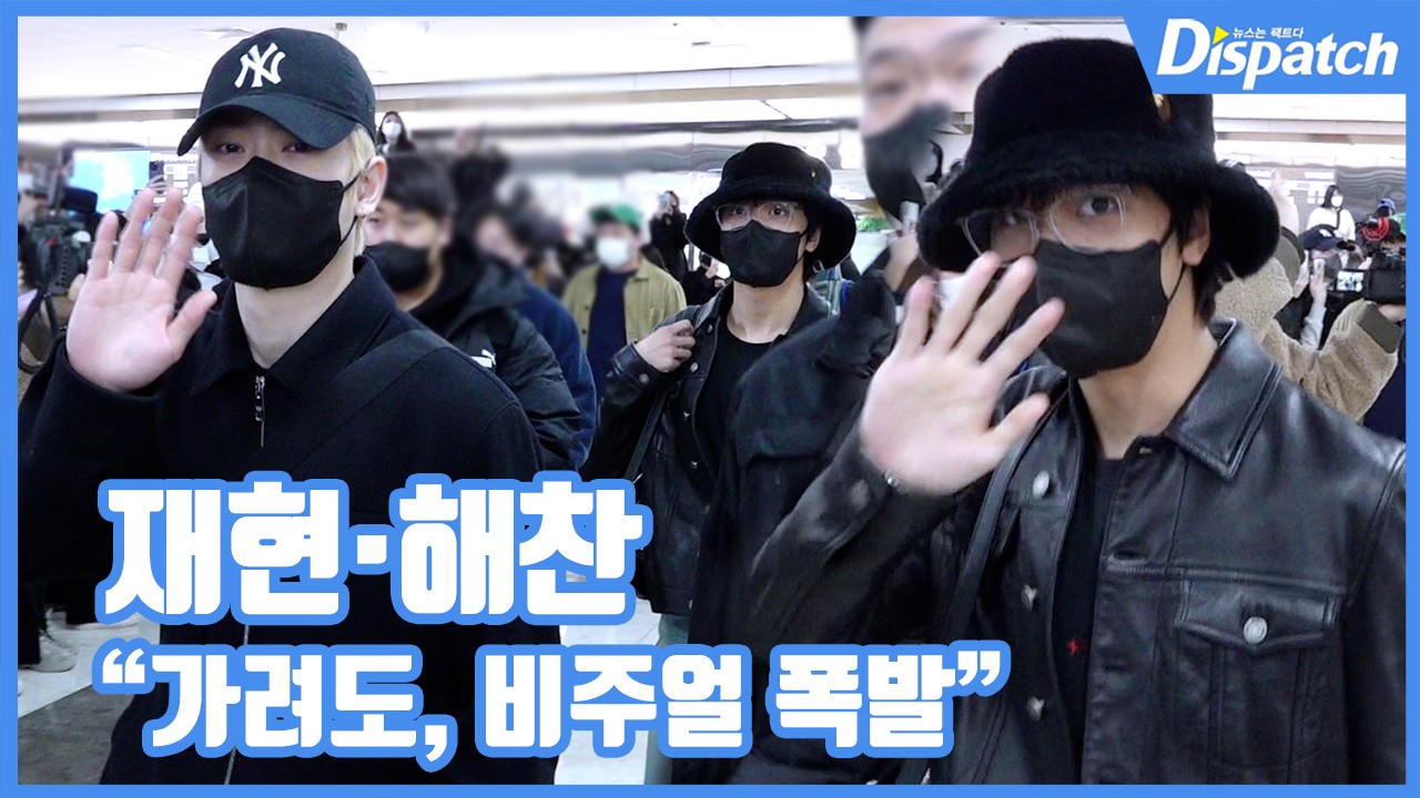 이날 재현, 해찬은 모자와 마스크로 얼굴을 가려도 잘생긴 비주얼을 감출 수 없었다.